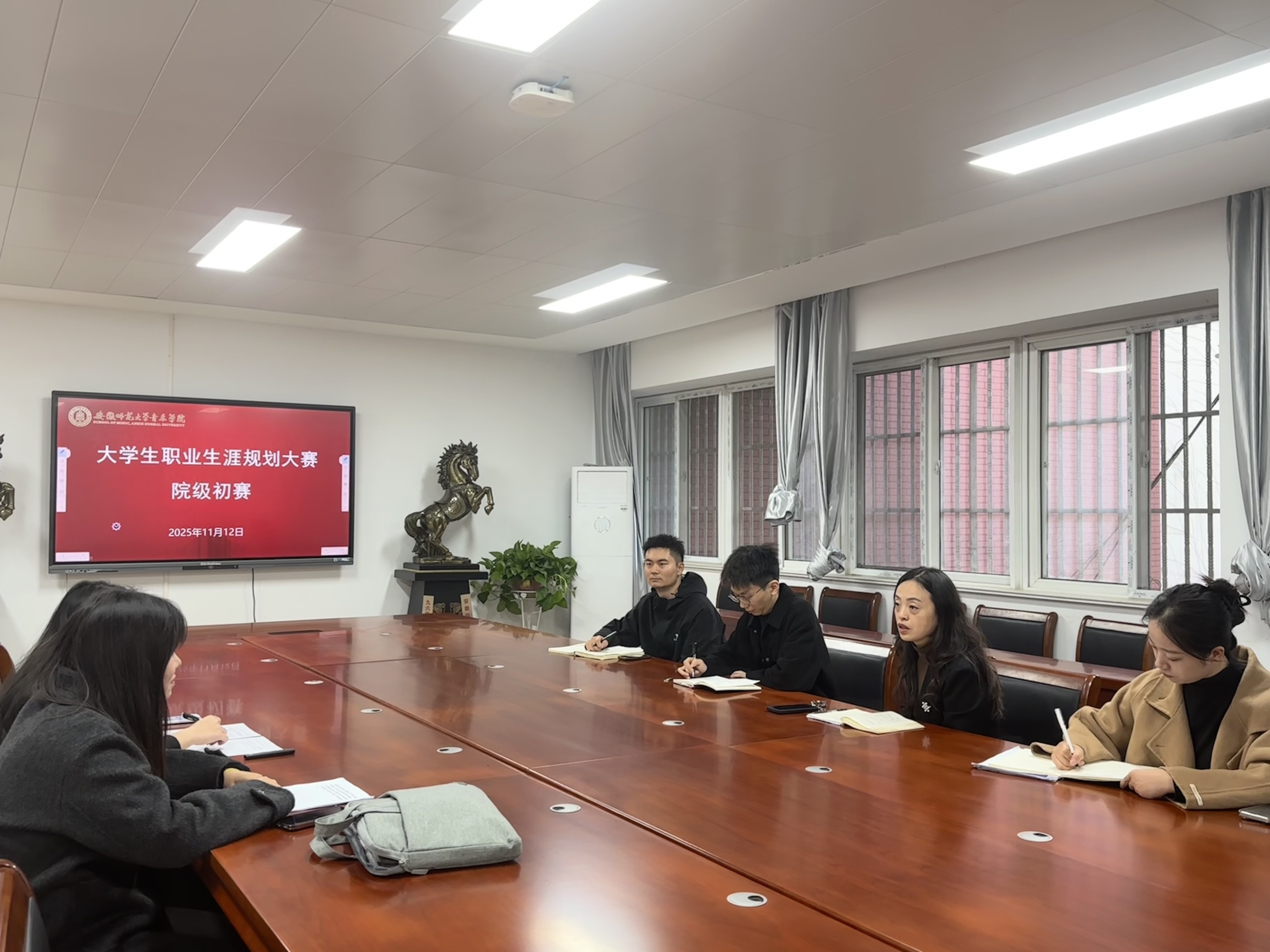 (音乐学院团委)为帮助音乐学院学子增强职业规划意识,提高规划能力,培养社会责任感,引导其树立正确的成才观、择业观。11月12日上午,音乐学院于二楼会议室举办第十六届大学生职业规划大赛暨第三届全国大学生职业规划大赛(安徽赛区)院级初赛。音乐学院党委副书记、纪委书记王俊荣、各年级辅导员出席参加担任评委。