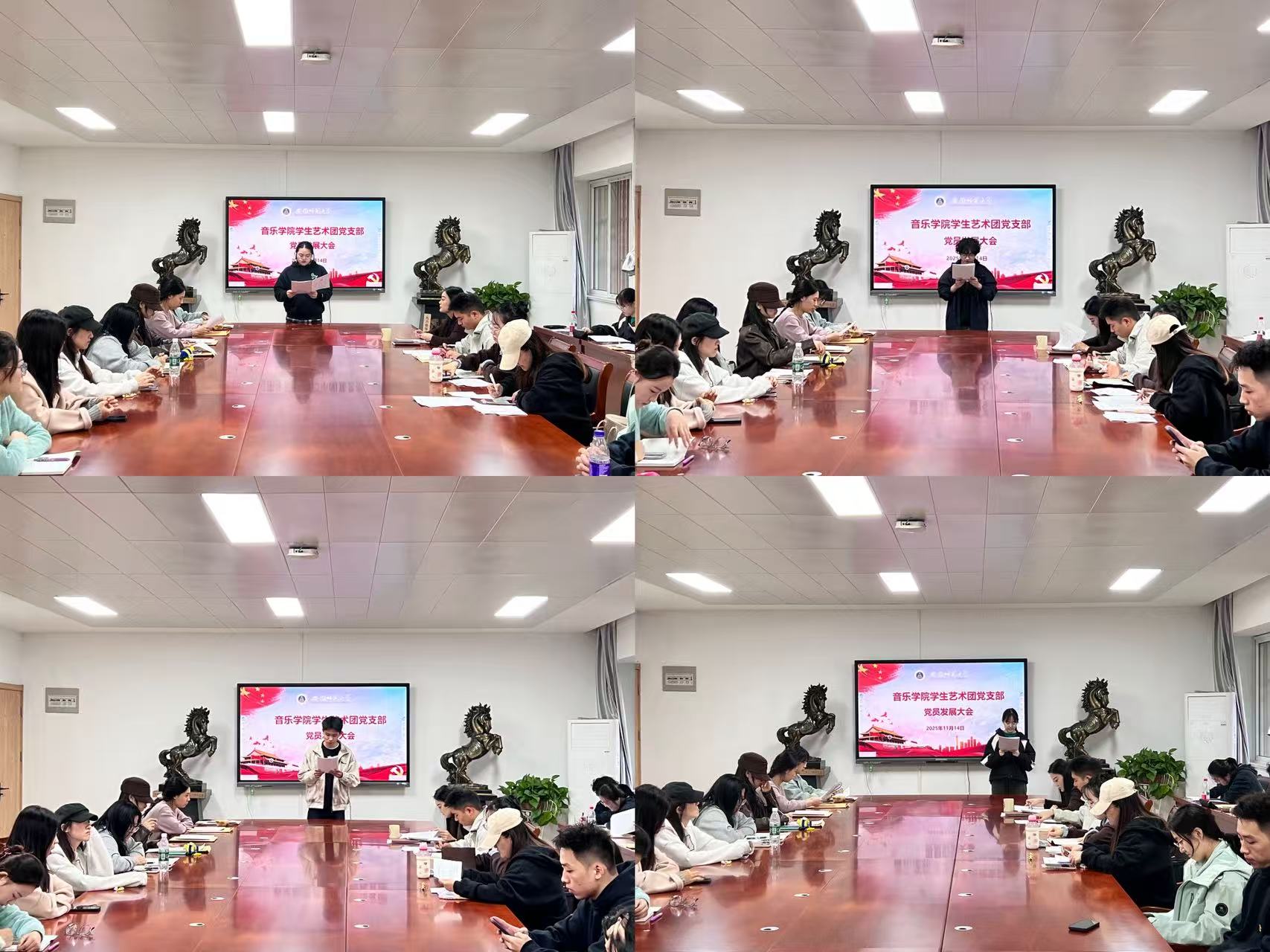 11月14日中午,音乐学院学生艺术团党支部召开支部大会,讨论并表决通过尹路等4名同志的入党申请,以及胡靖等5名同志的转正申请。音乐学院党委副书记、纪委书记到会指导。会议由支部组织委员虞睿主持,支部全体成员参加。