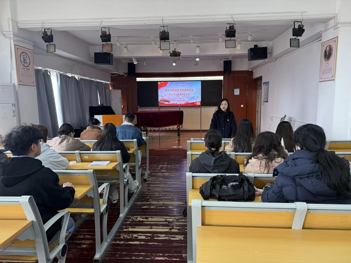 为严格党内政治生活,锤炼党员党性修养,3月11日下午14点,学生艺术团党支部于崇艺楼9502教室召开2025年度组织生活会,开展民主评议活动。会议由艺术团党支部书记段传钦主持,学院党委副书记、纪委书记王俊荣出席参加。