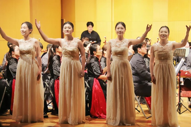 音乐会由薛军、高长春指挥,以经典民族管弦乐《庆典序曲》拉开序幕,包含了竹笛重奏、扬琴与乐队、二胡齐奏、吹打乐等多种表演形式,上演了《跑旱船》《节日的天山》《战马奔腾》《龙腾虎跃》等民族民间音乐,声歌系教师王妍、王亚楠、罗静、吴亚合四位教师倾情献唱了《唱支山歌给党听》《两地曲》等优秀声乐作品。民乐团的师生们以精湛技艺演绎国乐之美,二胡、琵琶、扬琴、竹笛等乐器交相辉映,奏出民族精神的昂扬气魄。
