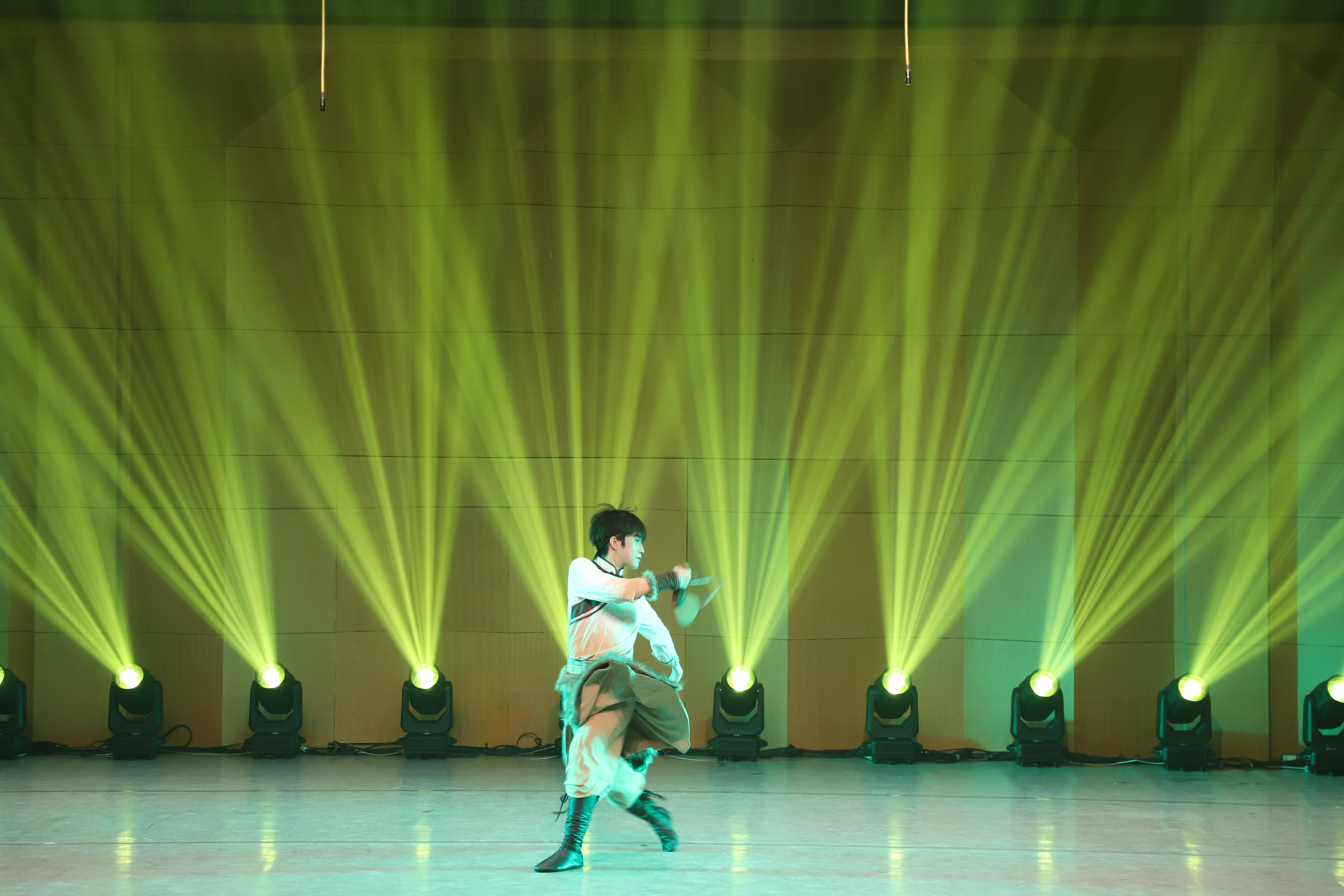 首先,个人独舞作品成为舞台亮点,舞蹈系教师纷纷登台,三位教师以独舞的形式彰显个人艺术风格的独特性。何国光老师演绎的《鹤》,以灵动身姿与气韵生动的表达,将“鹤”的灵秀风骨具象化;张逍老师的《且看行云》则在古典舞韵律中融入个人对“云”之意象的诠释;杨帆老师的《远方》以充满张力的动作,传递出对未知与理想的追寻。