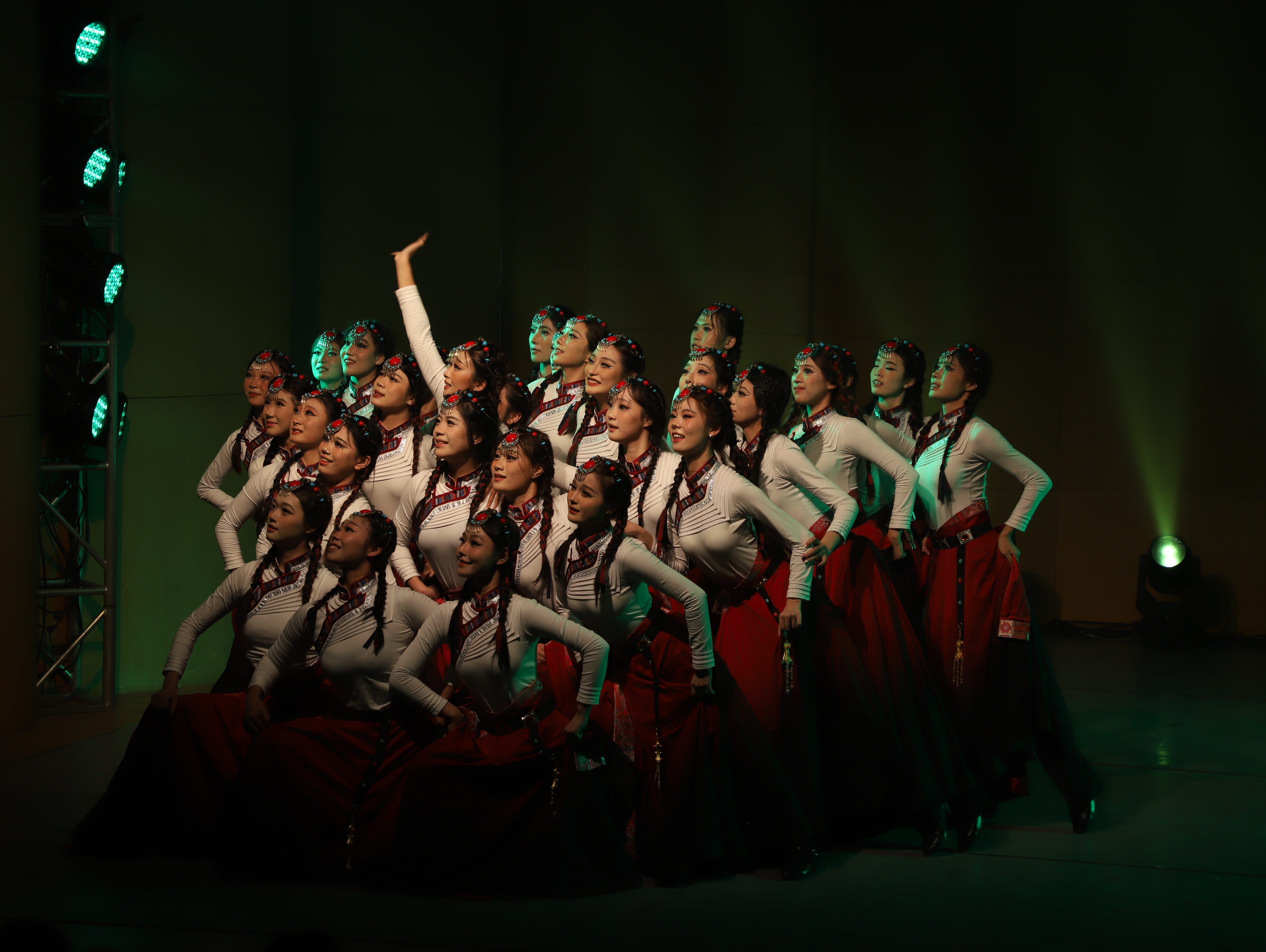 班级群舞作品则体现协作之美。2023级舞蹈表演女1班的《秋日》以细腻肢体语言在诗意中铺陈舞蹈的叙事张力;2024级舞蹈表演女2班的《唐印》与《簪花一卷》,将古典舞的雅致韵味融入每一个身段、每一次回眸,让传统文化在舞台上焕发光彩;2023级舞蹈表演女2班的《渔光曲》以抒情风格勾勒渔家风情,《莲鼓越歌行》则以热烈节奏传递民俗活力,一静一动间展现班级对不同题材的驾驭力;《走在山水间》系列(《盛开的阿古丽》《心中的绿洲》《蝴蝶》)由马艺珂、邱义恽、张淽棱分别演绎,以民族舞蹈的特有韵律展现地域文化风情。