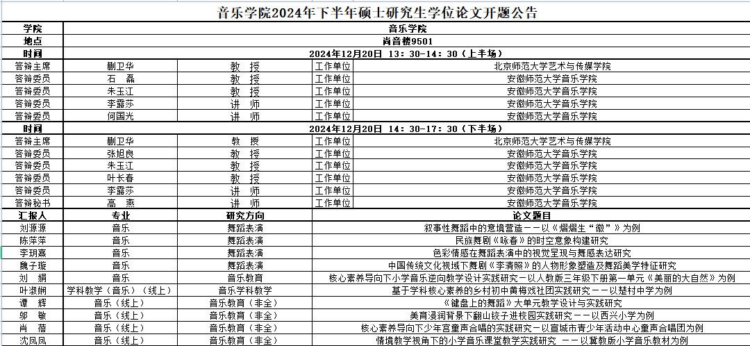 音乐学院2024年下半年硕士研究生学位论文开题公告