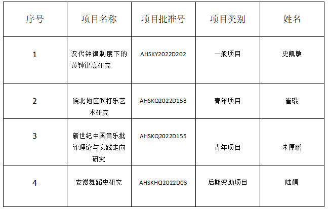 音乐学院2022年度安徽省哲学社会科学规划项目立项清单