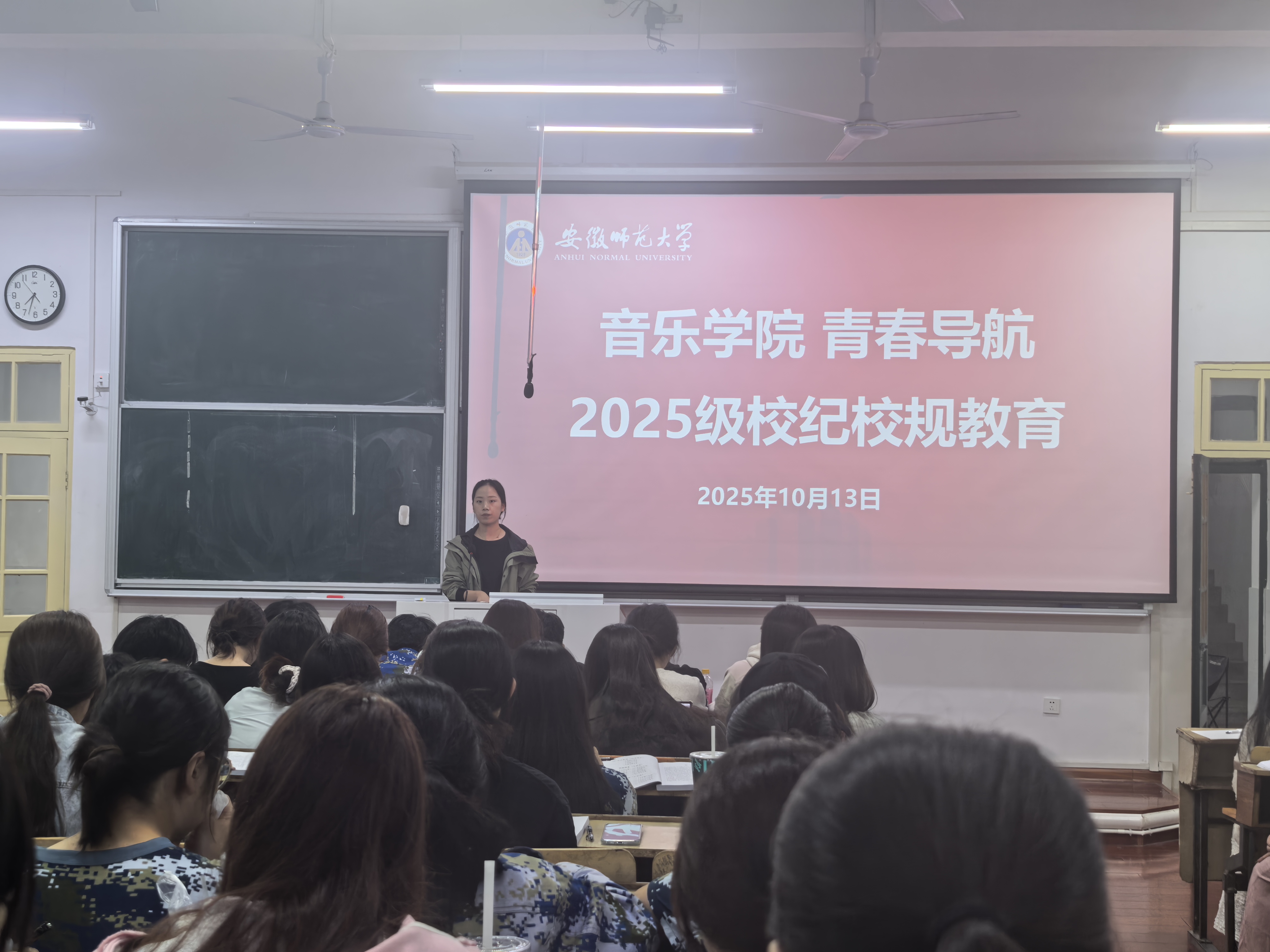 本网讯(25音乐学 刘欣冉)为帮助新生更快适应校园生活、明确校纪校规,音乐学院2025级于10月14日在教学楼1401教室召开“青春导航之校规校纪主题学习教育”班会,新生辅导员陈虹主持会议,2025级班导生代表主讲,全体新生参会。