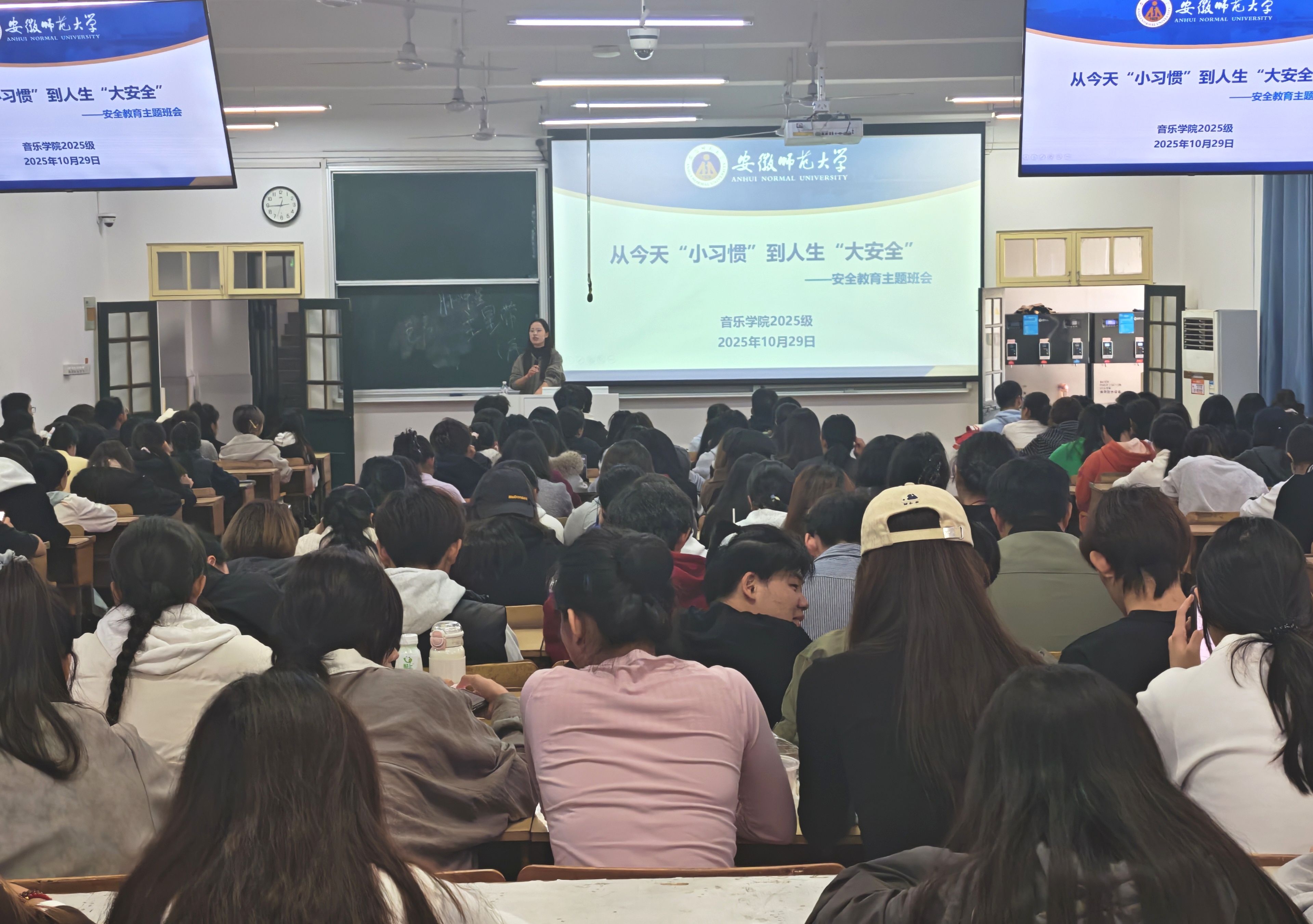 “千里之堤,溃于蚁穴;生命之舟,覆于疏忽。”不怕千日紧,只怕一时松。陈虹结合真实火灾案例展开深入剖析,向全体学生做出重要安全提示。陈虹老师指出,宿舍是学生日常学习生活的重要场所,务必高度重视消防安全与用电规范,做到安全用电、保持环境卫生整洁、离开宿舍及时锁门,并自觉抵制各类推销行为,共同维护安全有序的居住环境。针对校园出行问题,特别强调了交通安全的重要性,并再次明确重申:禁止25级学生在校园内骑行电瓶车,以预防交通事故发生,保障学生出行安全。