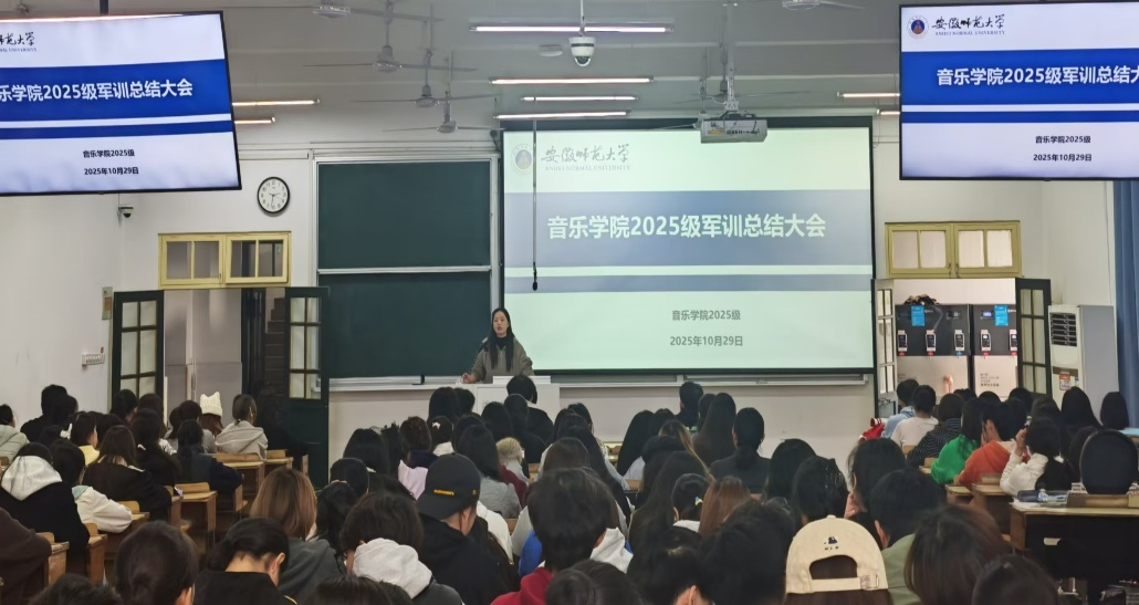 本网讯(2025级 刘辰俊飞 王思雨) 10月29日下午,音乐学院为在教学楼 1410召开2025级军训总结暨安全教育主题班会,辅导员陈虹及音乐学院全体新生共同参与,将军训成果复盘安全意识教育培养深度结合,增强学生的安全意识与健康观念。