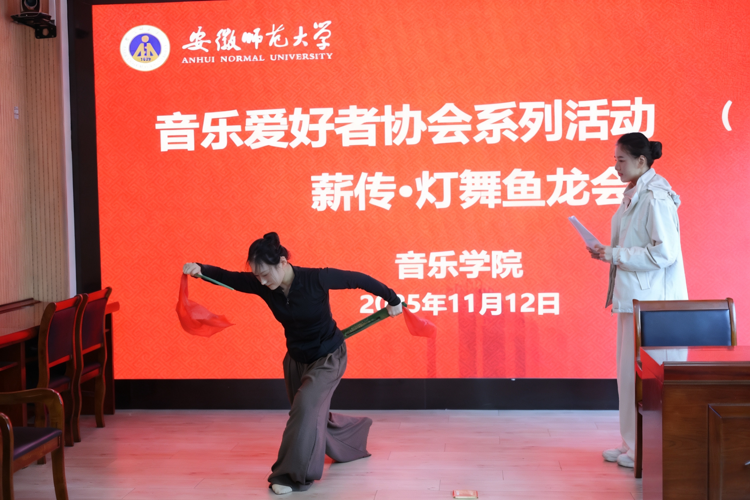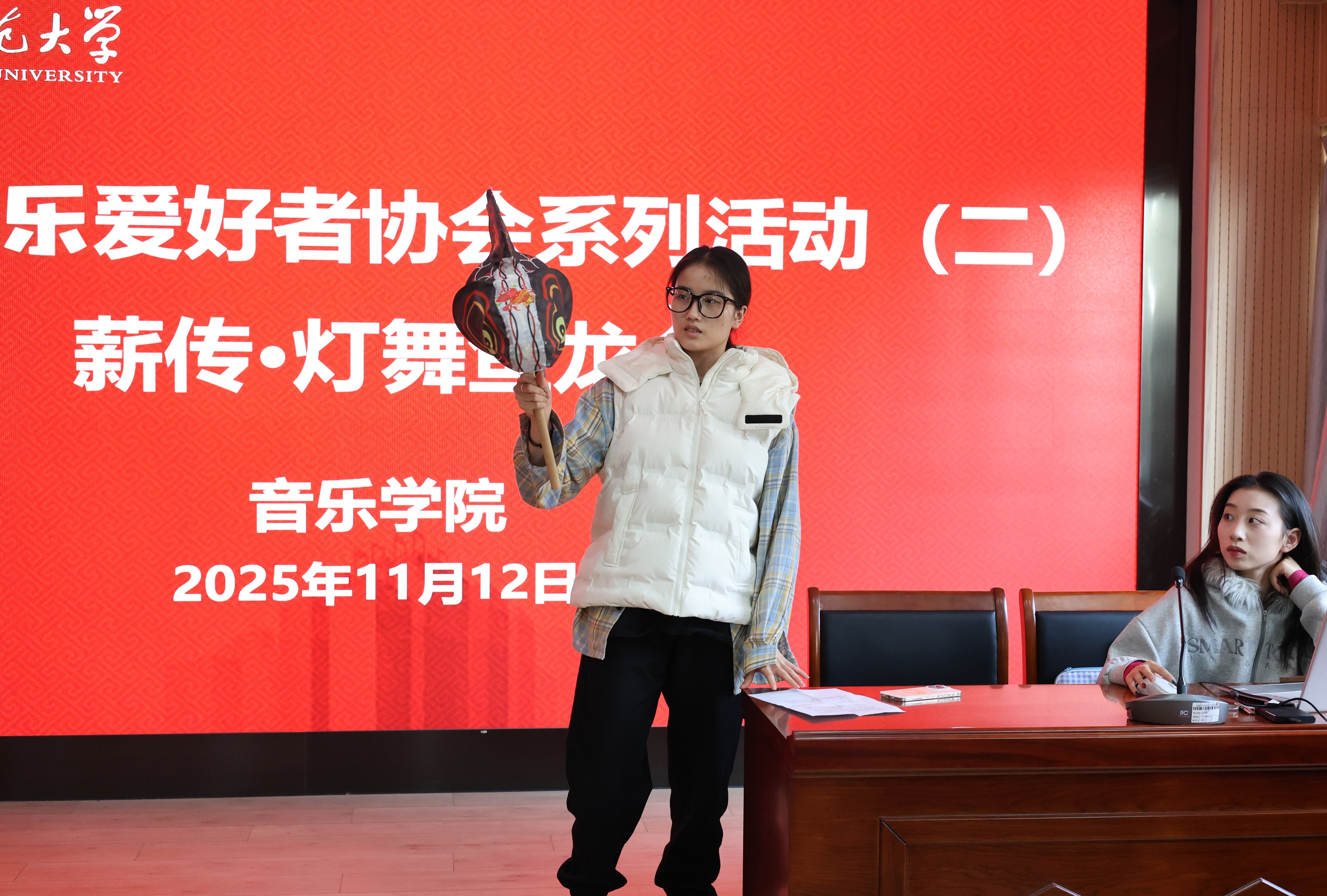 11⽉12⽇下午,“音乐爱好者协会”在学院三楼学术报告厅成功举办“薪传·灯舞鱼龙会”心理育人实践活动。本次活动由指导教师段传钦主持,协会全体成员与各学院学生代表共同出席参加。
