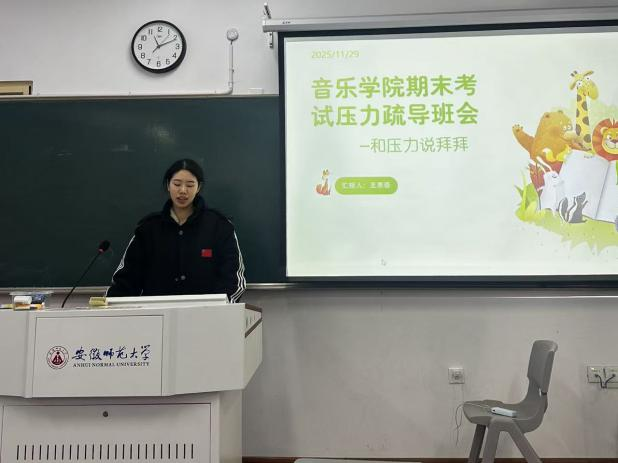 此次班会,既普及了心理健康知识,又提供了科学实用的减压技巧,有效帮助同学们缓解了备考焦虑,增强了应对考试的信心和能力。音乐学院心理辅导站始终高度关注学生心理健康,此次班会是学院心理健康教育工作的重要举措之一。未来,学院将持续开展形式多样的心理健康教育活动,不断完善心理健康服务体系,为学生的成长成才保驾护航。