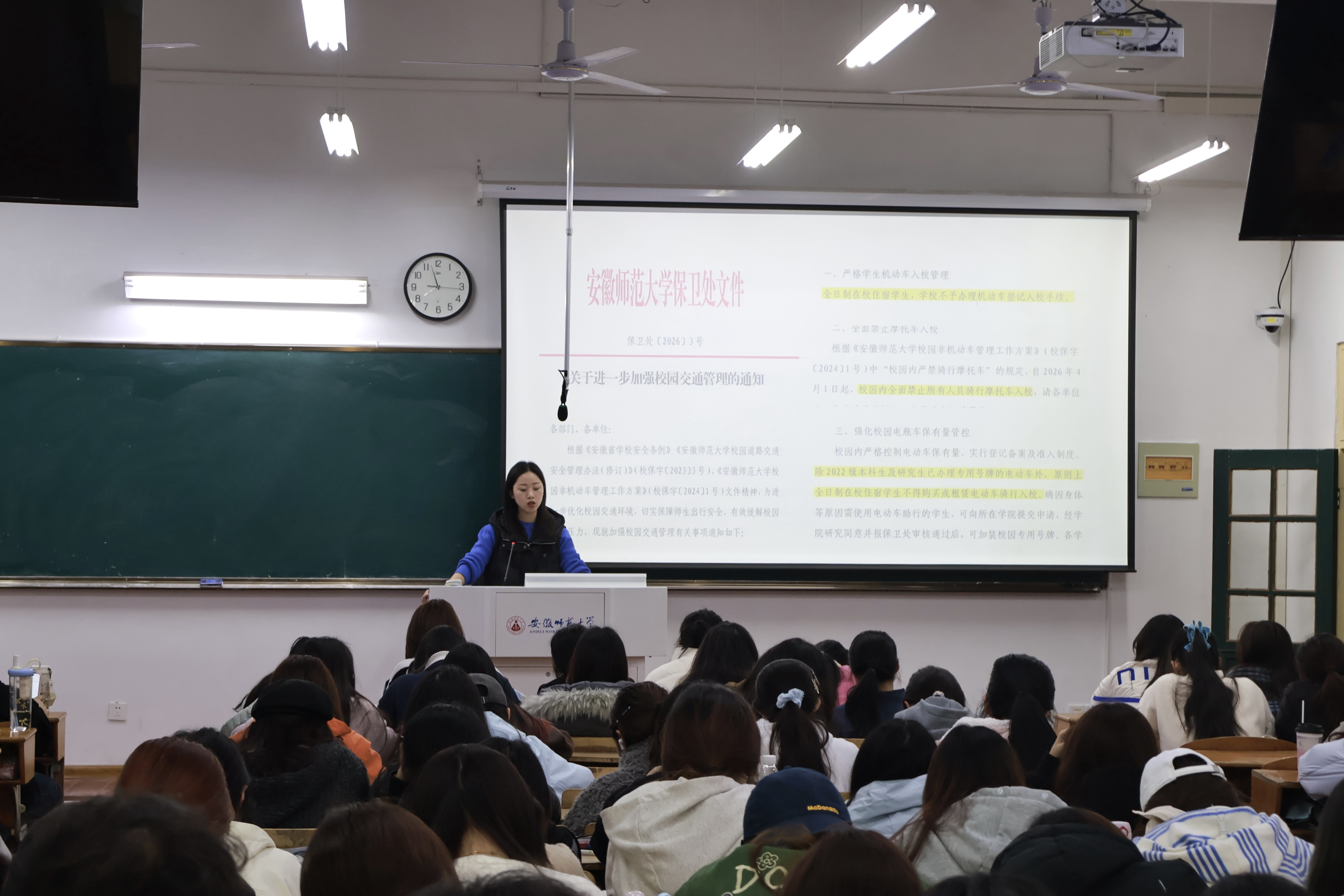 班会围绕学校最新发布的《关于进一步加强校园交通管理的通知》展开学习。辅导员结合文件精神,向同学们详细解读了校园交通管理新规:全日制在校住宿学生不予办理机动车登记入校手续;自2026年4月1日起校园内全面禁止摩托车入校;除2022级本科生及研究生已办理专用号牌的电动车外,原则上全日制在校住宿学生不得购买或租赁电动车骑行入校。针对有特殊出行需求的同学,辅导员特别说明,若因身体等原因确需使用电动车助行,须按规定向辅导员提交申请,经批准后方可使用,严禁未经许可私自骑行电动车入校。辅导员强调,校园交通安全关系到每一位同学的切身利益,希望同学们严格遵守校园交通管理规定,自觉抵制违规骑行行为,共同营造安全、有序、文明的校园交通环境。