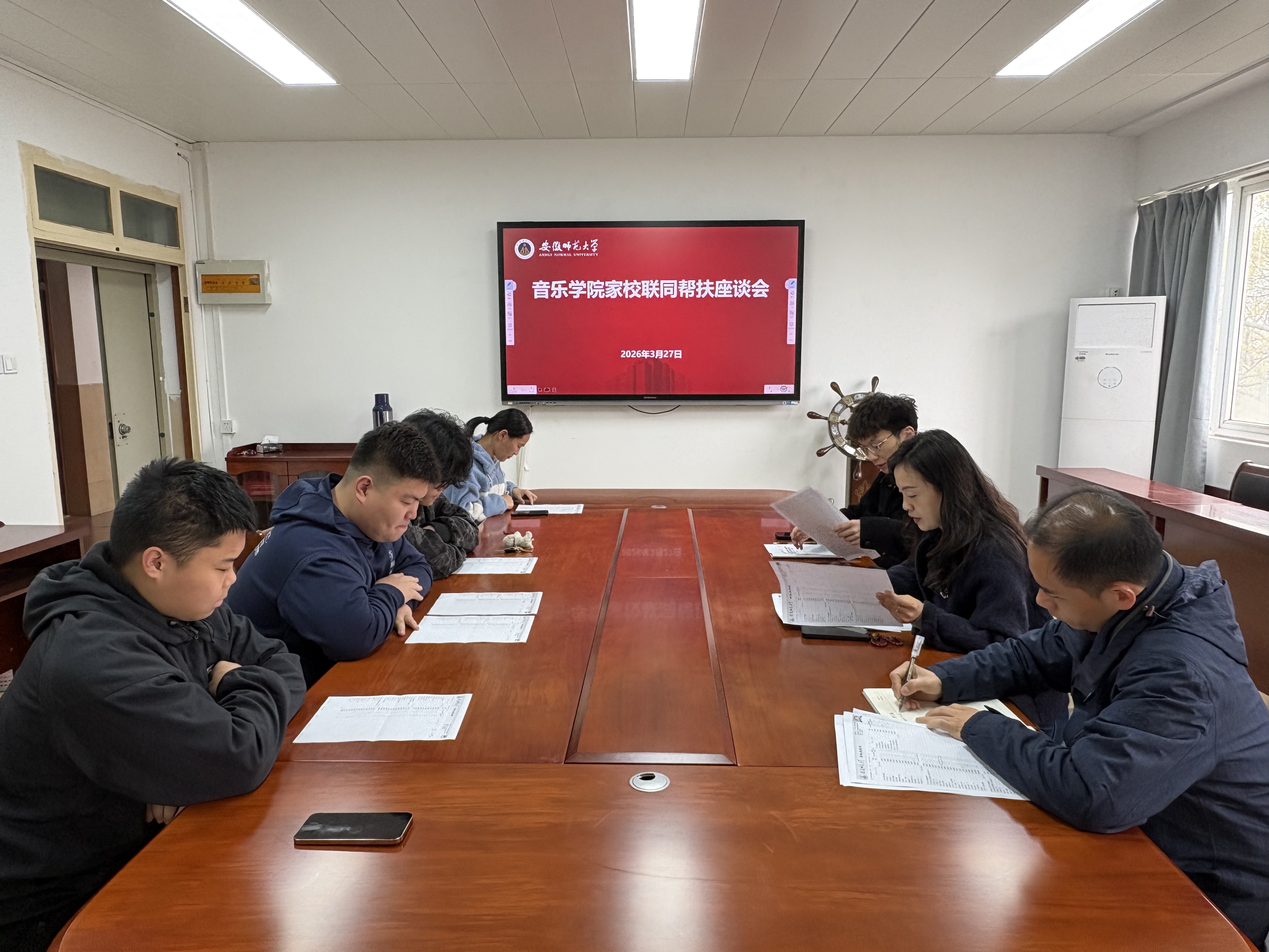 为深入推进“大学生护航行动计划”,进一步畅通家校沟通渠道,推进学业护航,3月27日上午,音乐学院召开家校联同帮扶座谈会,学院党委副书记王俊荣,院教学办梁超和2024级部分家长、学生代表参加座谈会,座谈会由辅导员张宇豪主持。