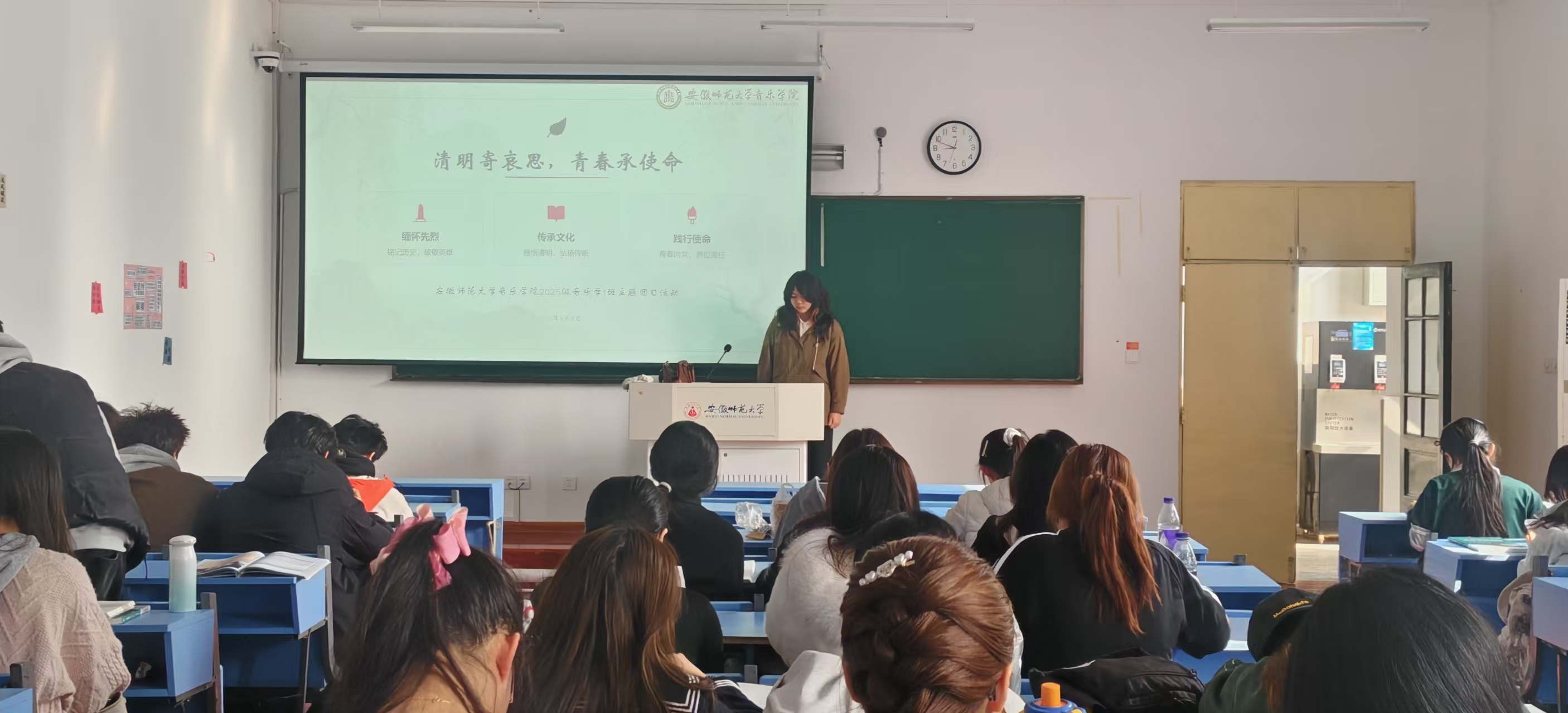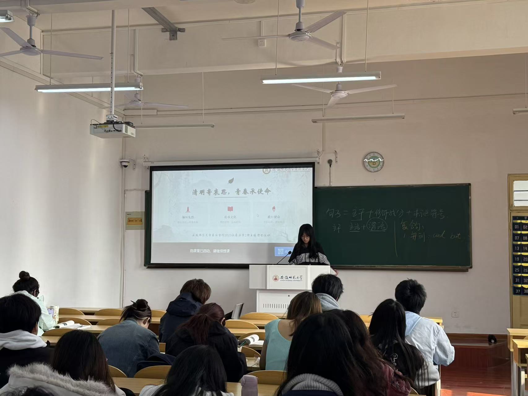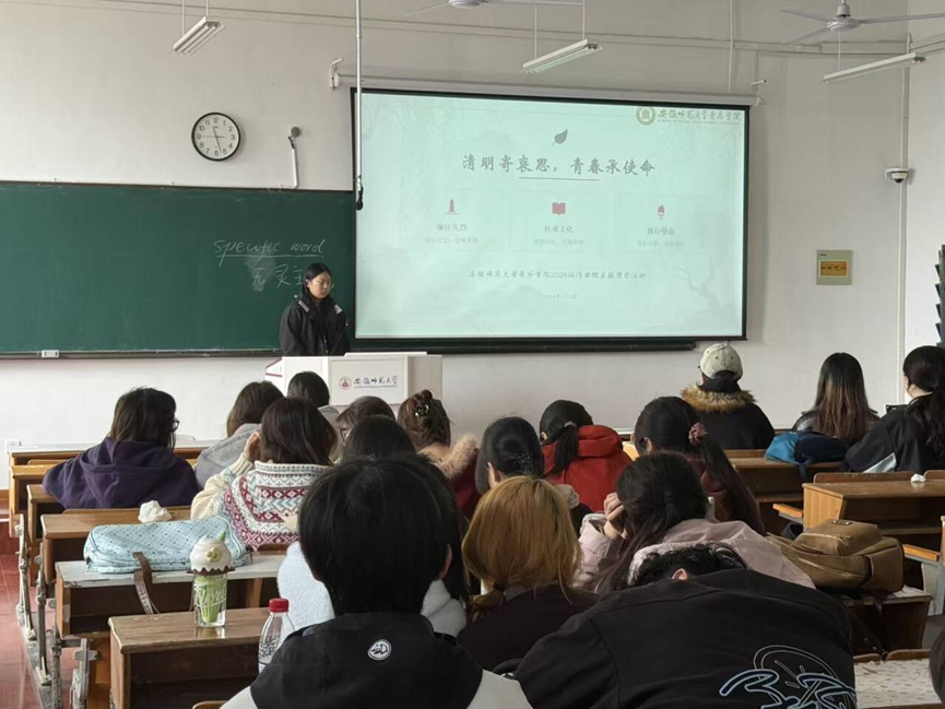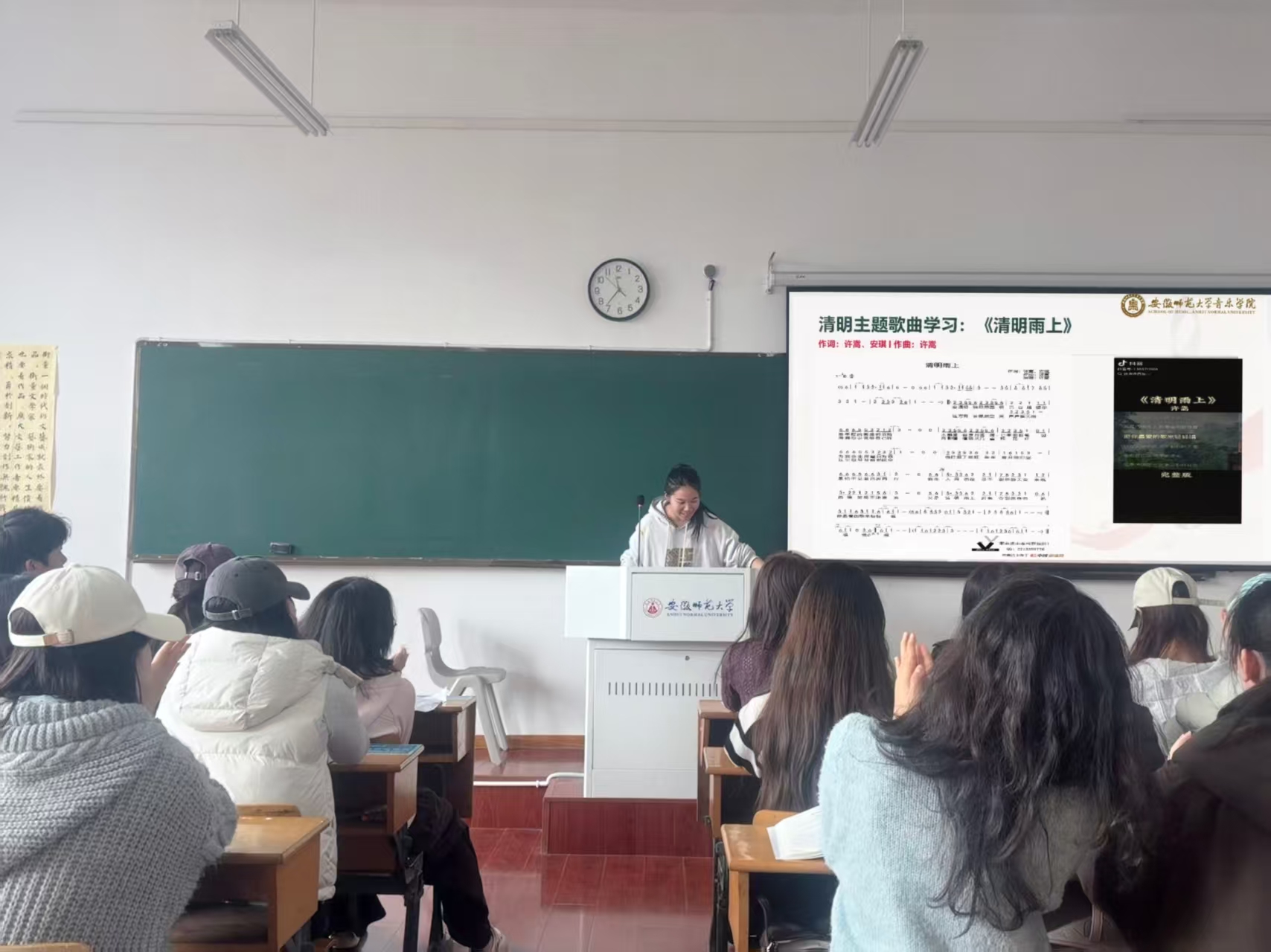 本网讯(25音表 王思雨)为弘扬中华优秀传统文化,引导青年学子厚植家国情怀、赓续红色血脉,4月2日,音乐学院2025级全体学生在教学楼开展“清明寄哀思,青春承使命”清明节主题团日活动。本次团日活动以“缅怀先烈、传承文化、践行使命”为主线,通过多种形式引导学生在慎终追远中汲取奋进力量。