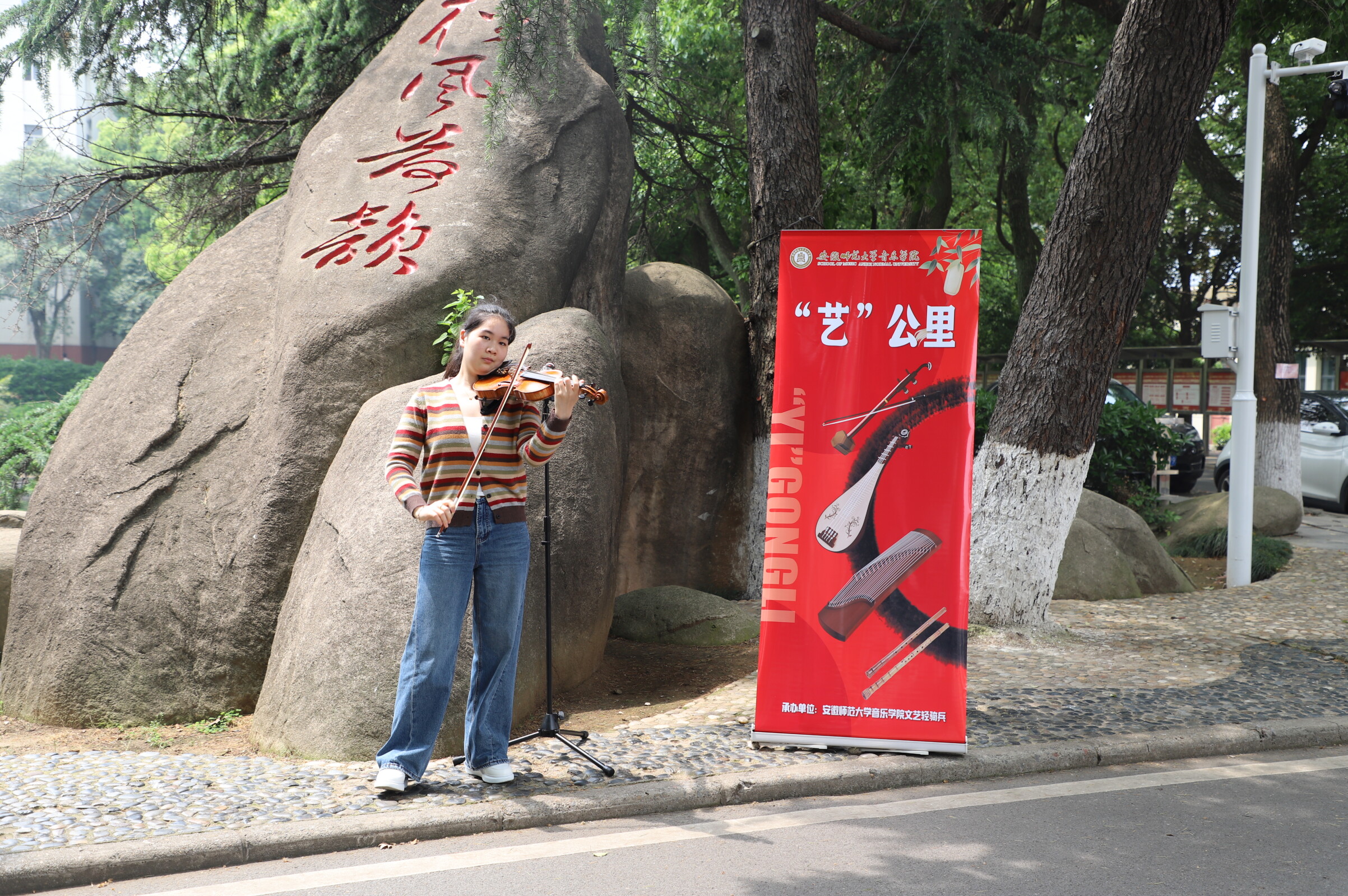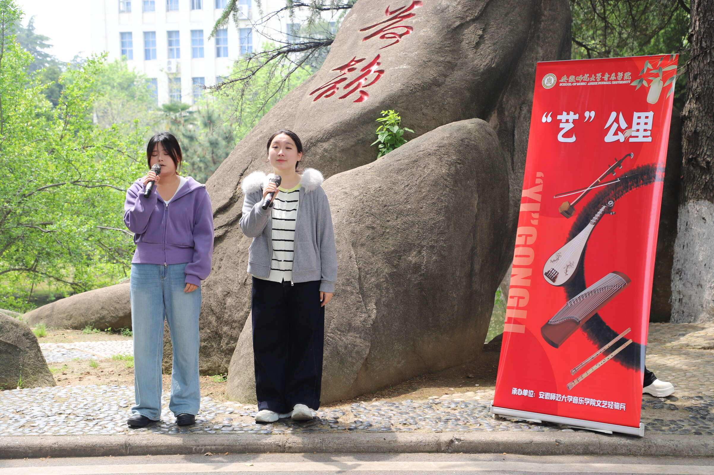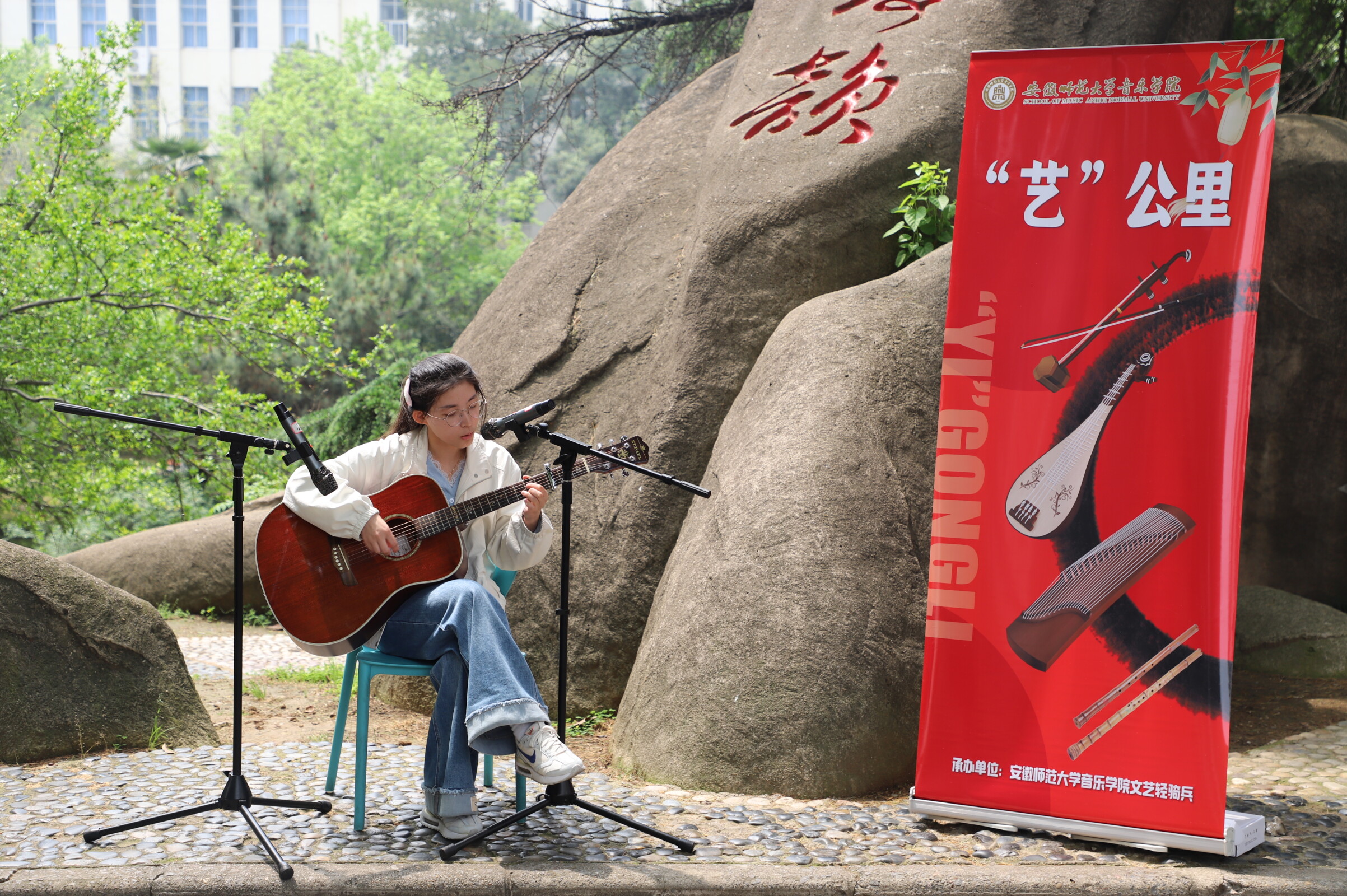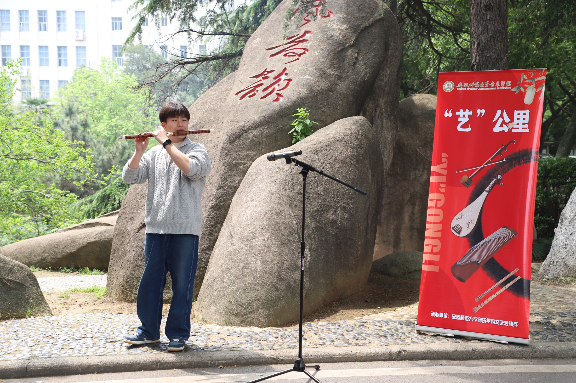 (院团委)4月16日中午,在赭山校区食堂广场,音乐学院“文艺轻骑兵”演出志愿服务团队师生将艺术的舞台从课堂延伸至生活区,以美食香气为伴,以青春活力为弦,为正在用餐和路过的师生们带来了一场别开生面的“艺公里·食光乐韵”音乐会。