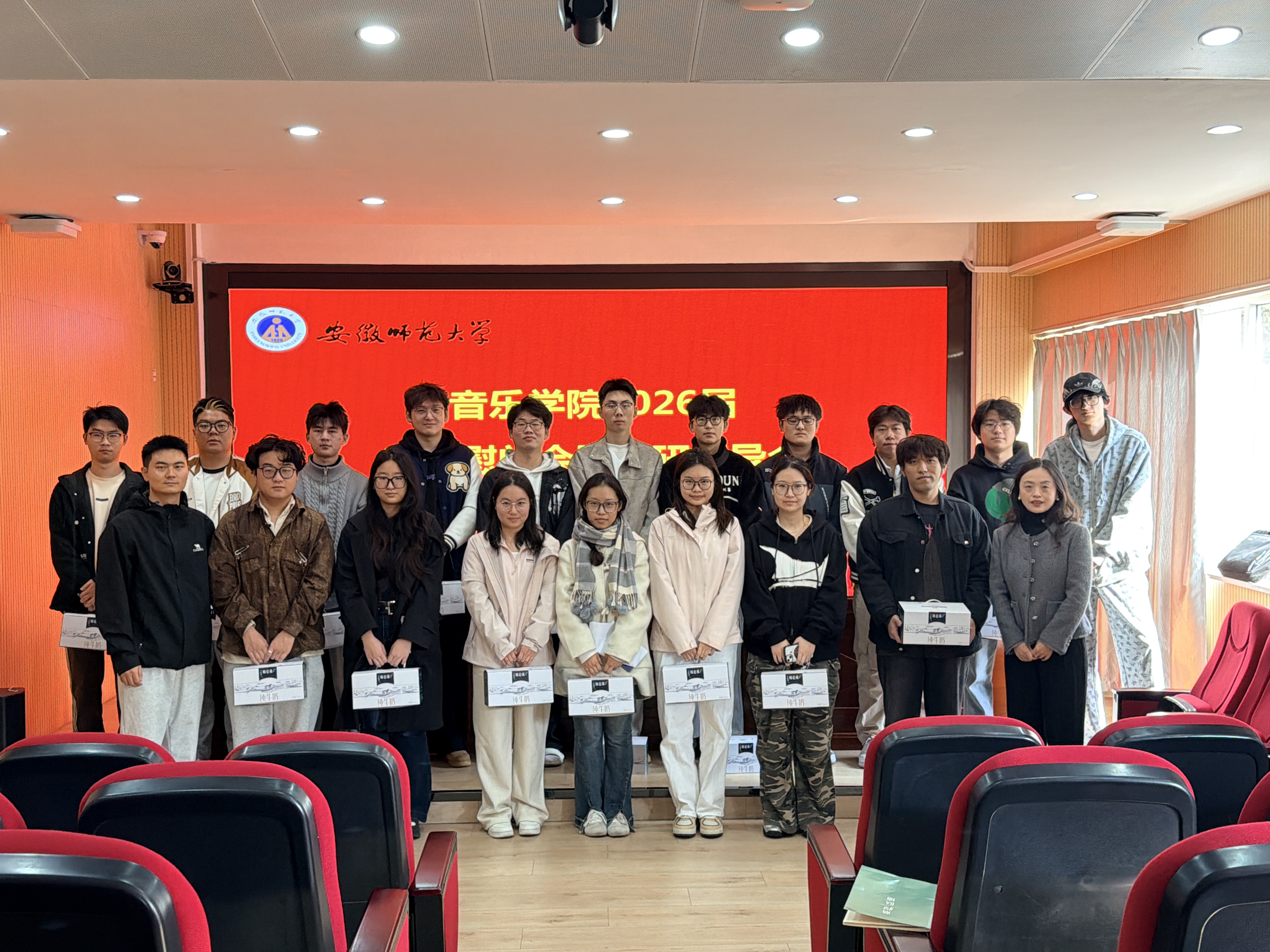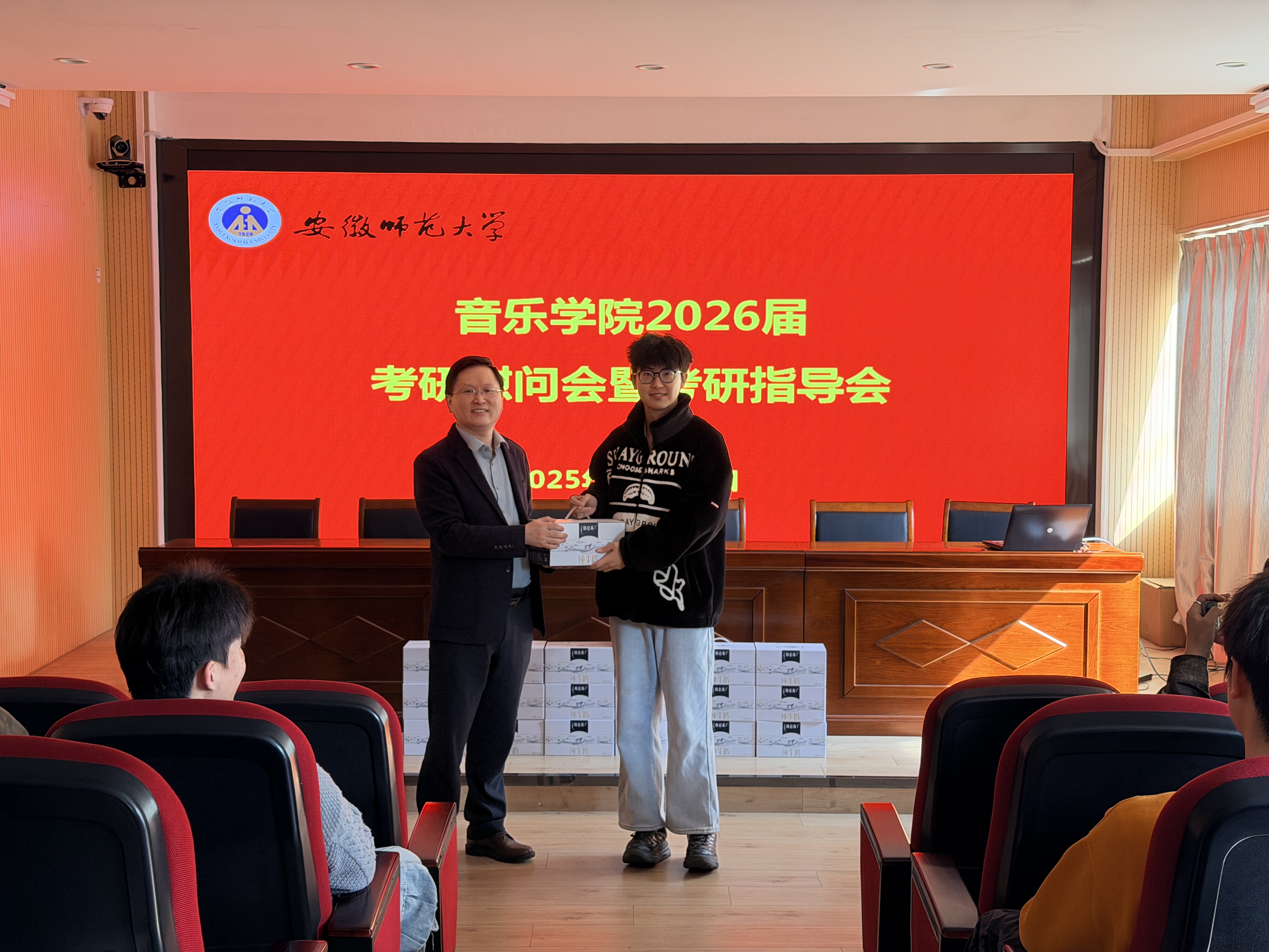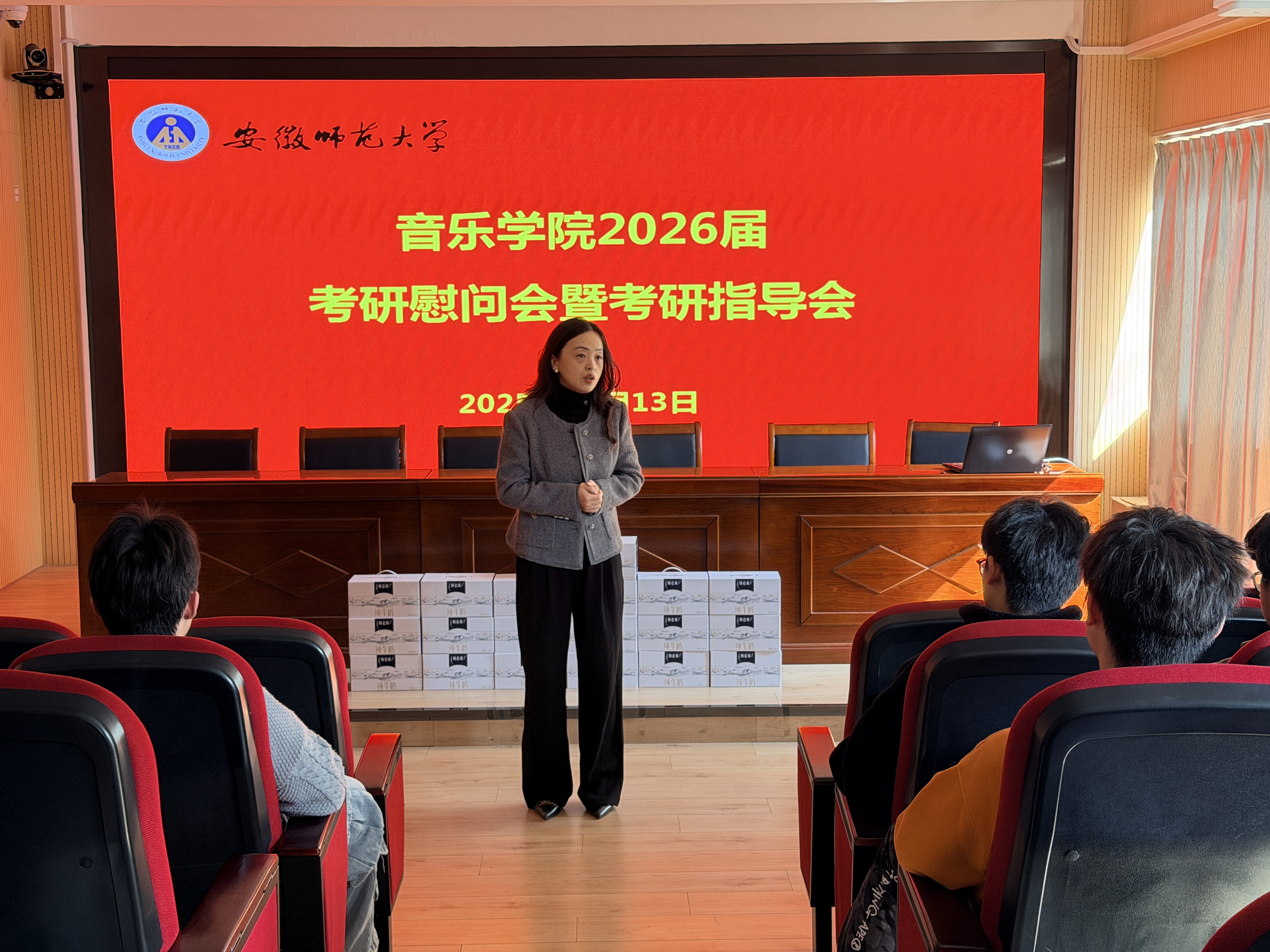 11月13日上午,音乐学院在三楼学术报告厅举行2026届毕业生考研慰问暨考研指导会,院长汪海元、院党委副书记、纪委书记王俊荣、2026届考研学生代表共同参加,会议由2026届毕业班辅导员段传钦主持。