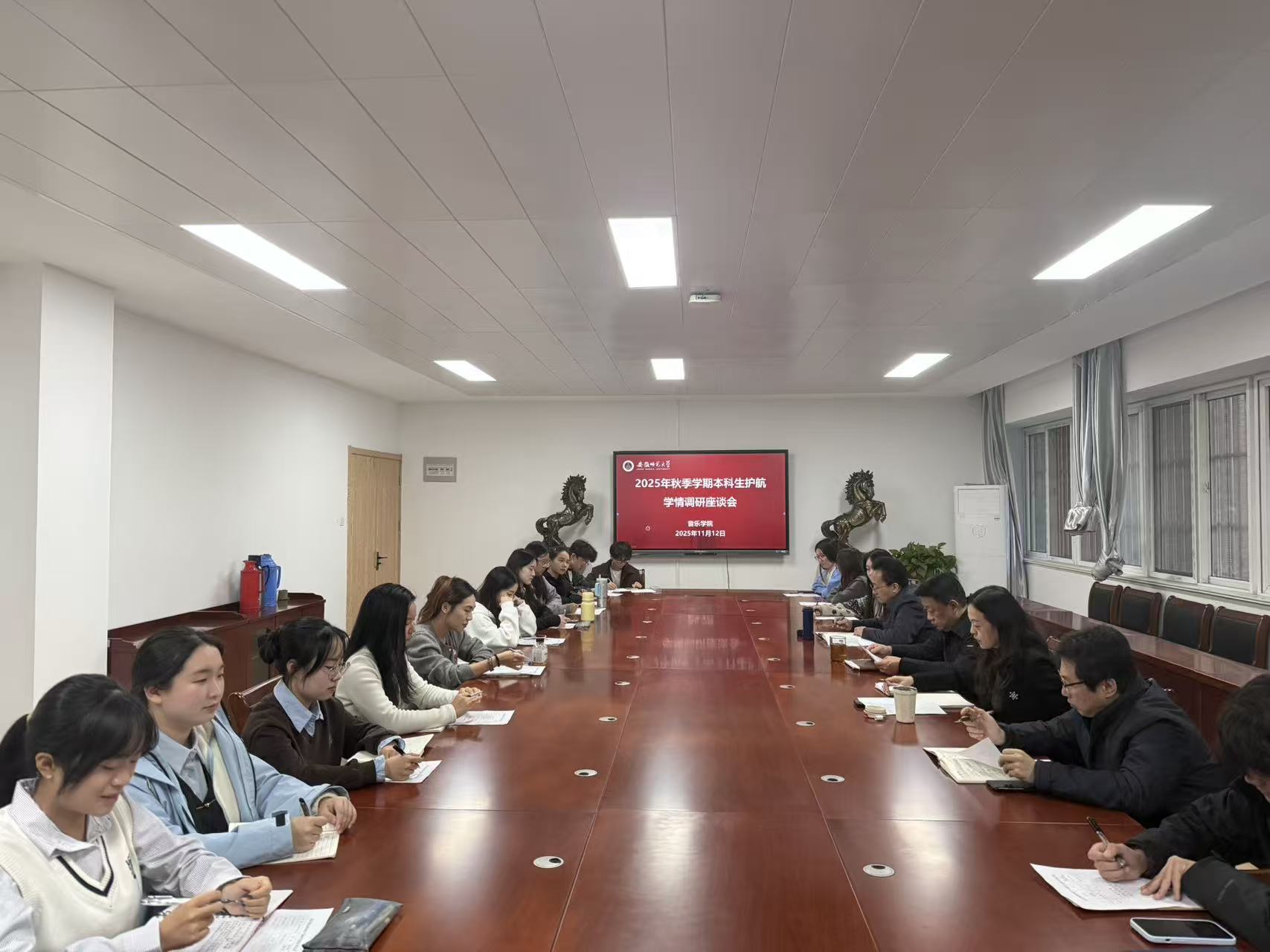本网讯(院学工委办公室)11月12日下午,音乐学院召开2025年秋季学期本科生护航学情调研专题座谈会,学院党委书记奚泰来,副院长程炳杰、曹艺阐,本科各年级专业学生代表参加会议。会议由学院党委副书记、纪委书记王俊荣主持。