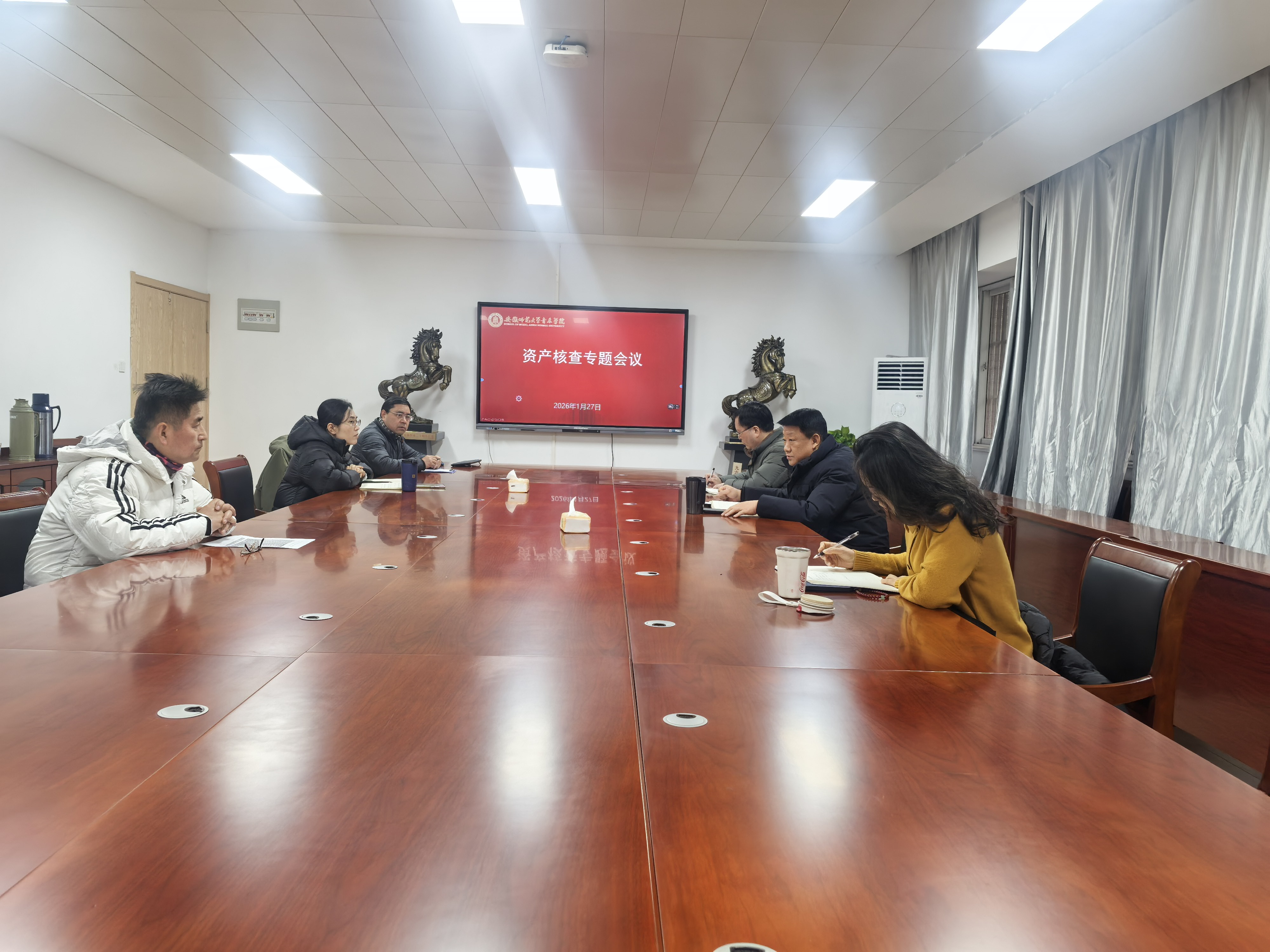 1月27日,音乐学院召开资产核查专项工作推进会。院党委书记奚泰来、院长汪海元、院纪委书记王俊荣参加会议。院资产管理员、办公室等有关工作人员参加。奚泰来主持会议。