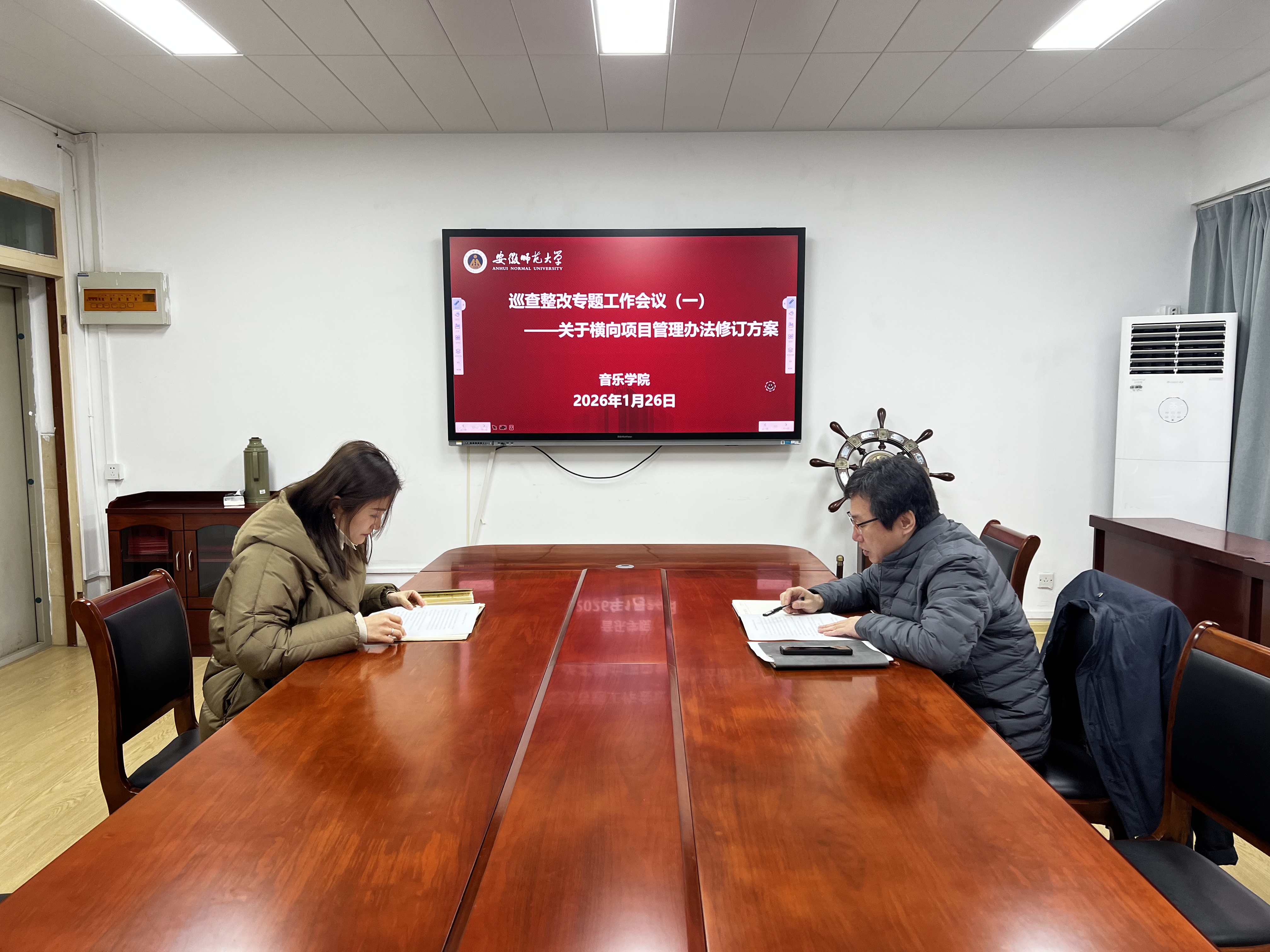 1月26日下午,音乐学院召开横向科研项目管理办法修订工作专题布置会。分管横向科研项目副院长曹艺阐、科研秘书白婧就暂行有关横向科研项目管理办法的修订方案开展专题讨论,并明确修改内容和办法完成时间,提出了整改要求。