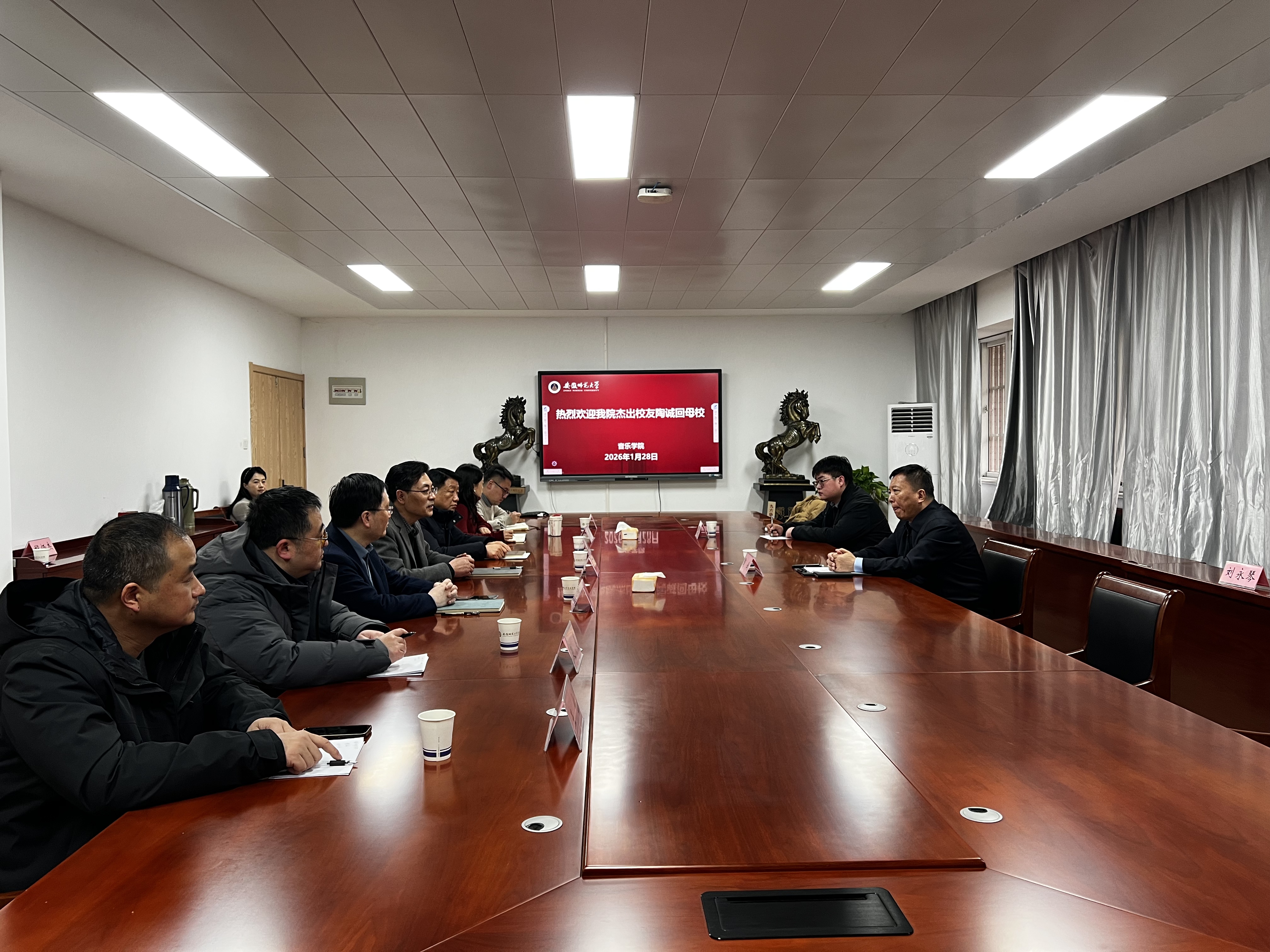 专题讲座前,陶诚在副校长桑青松与音乐学院领导班子的陪同下参观了现今的音乐学院和皖江中学堂,深情回忆了他在安徽师范大学艺术系求学时的点滴故事,表达了对母校的感激之情。