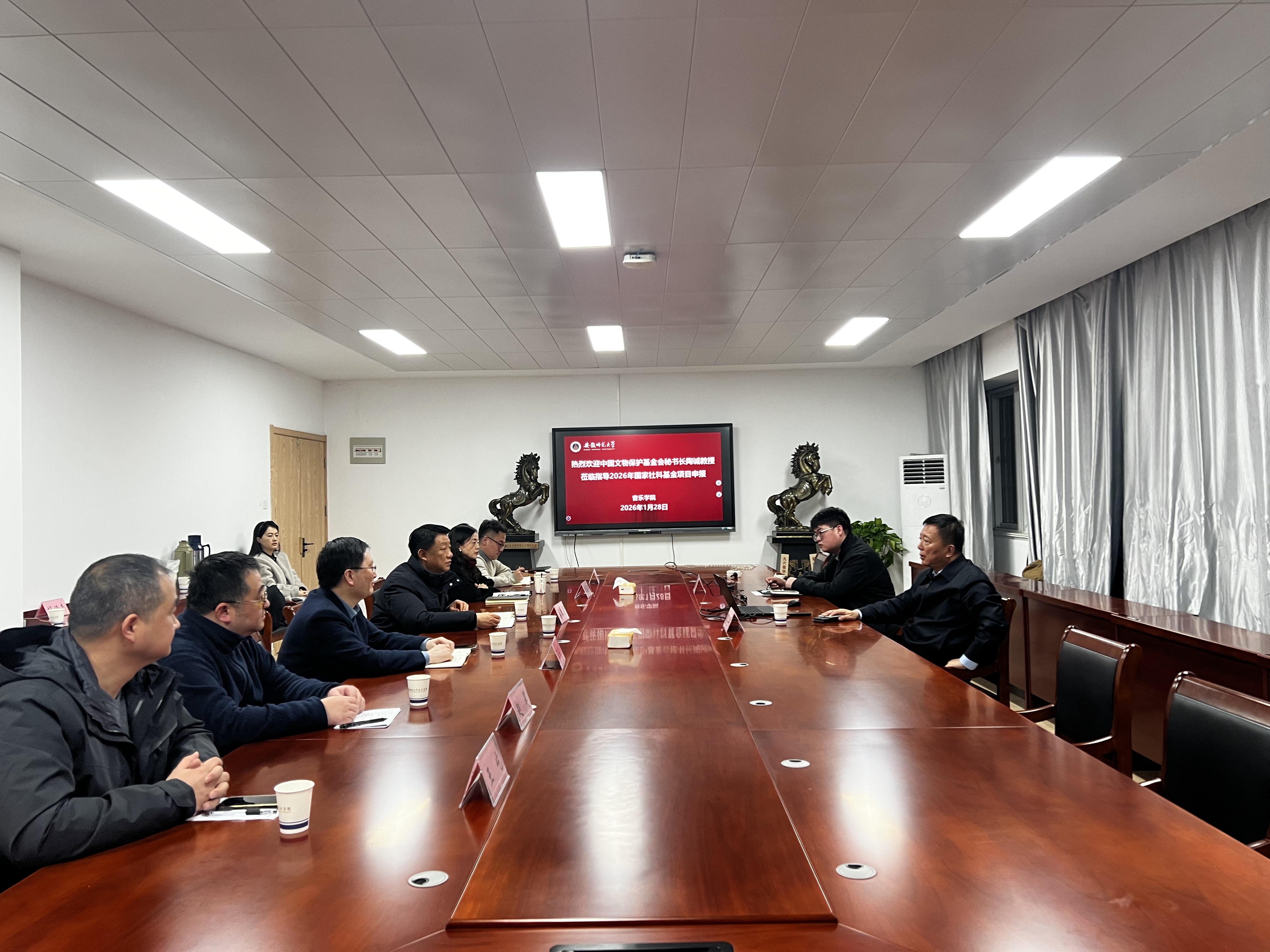 1月28日下午,音乐学院84届杰出校友、现中国文物保护基金会秘书长陶诚应邀回母校作《艺术学与艺术科研》专题讲座。校党委常委、副校长桑青松、音乐学院党委书记奚泰来、院长汪海元、党委副书记王俊荣、校党委宣传部副部长杨穆龙、新闻与传播学院副院长赵昊、美术学院副院长王屹以及音乐学院部分青年教师共同参加了本次讲座。讲座由汪海元主持。