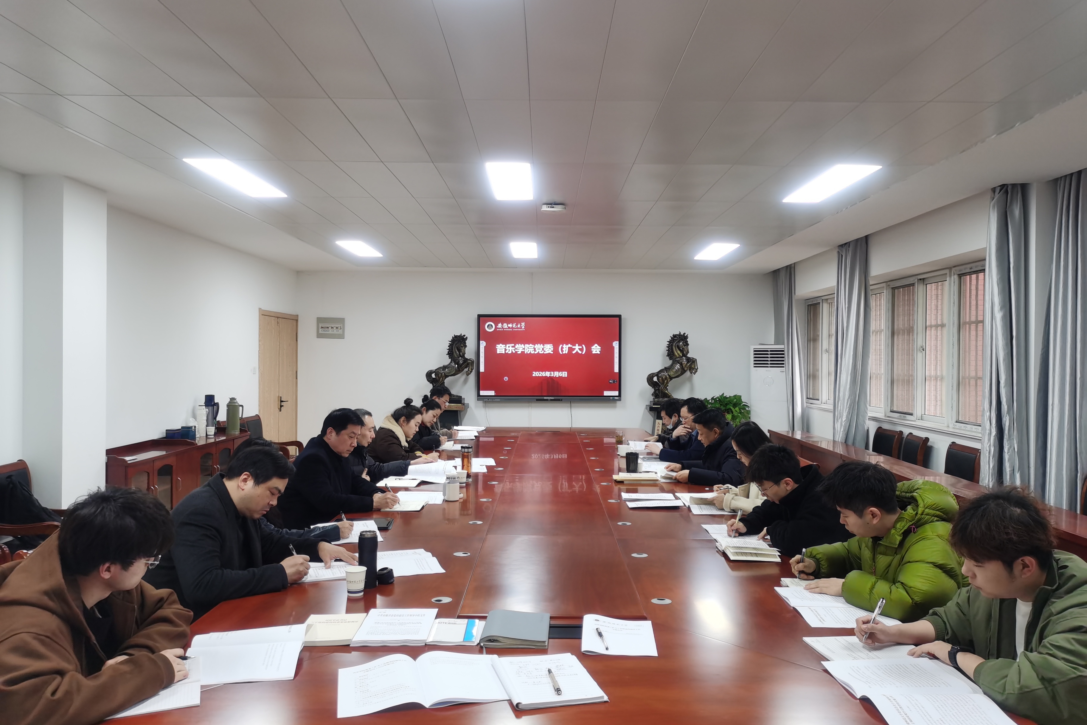 奚泰来指出,2026年是“十五五”规划的开局之年,是获批音乐专业博士点后迈向高质量发展的关键之年。开展树立和践行正确政绩观学习教育,对于学院抢抓“长三角一体化”和美育教育发展机遇,实现学院内涵式发展具有极其重要的意义。一要锚定“立德树人”的根本,树立“为党育人、为国育才”的政绩观。将习近平总书记关于教育、文艺的重要论述融入教育教学全过程,通过高雅艺术进校园、进基层、进军营等实践活动,让师生在服务人民中砥砺品格,成长为有信仰、有情怀、有担当的新时代文艺人。二要秉持“功成有我”的担当,树立“实事求是、长期主义”的政绩观,以“钉钉子”精神抓好博士点和“三个基地”建设。三要厚植“艺术为民”的情怀,树立“服务师生、服务社会”的政绩观。始终把师生的冷暖放在心上,把服务社会扛在肩上,驰而不息加强作风建设,要深入课堂、深入琴房、深入宿舍,倾听师生心声,解决实际困难;要发挥音乐学科的特色优势,紧扣时代主题,服务地方文化发展,在服务国家和区域文化建设中展现师大音乐人的担当。