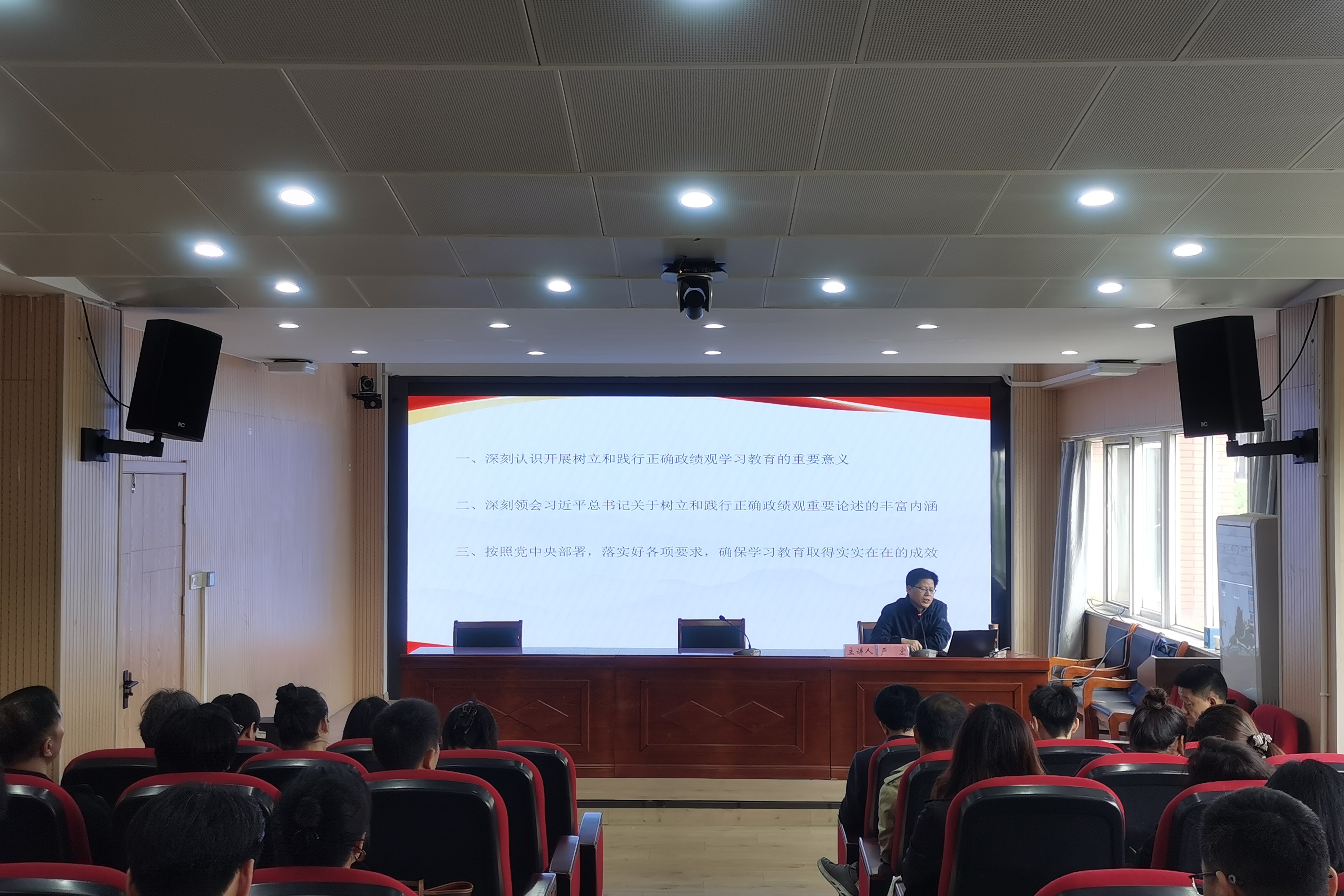 严宏以《树立和践行正确政绩观——深入学习贯彻习近平总书记关于树立和践行正确政绩观的重要论述》为题,结合习近平总书记关于书记和践行正确政绩观论述,重点讲述了“开展树立和践行正确政绩观学习教育的重要意义”、“习近平总书记关于树立和践行正确政绩观重要论述的丰富内涵”和“如何落实好中央部署和要求,确保学习教育取得实实在在的成效”。他指出,本次学习教育是党的十八大以来第9次党内集中学习教育,主题鲜明,任务明确,他运用马克思主义唯物史观,分析了什么是“最大政绩”,他要求大家要深刻理解领悟“政绩为谁而树、树什么样的政绩、靠什么树政绩”等重大问题,同时号召大家牢牢把握好“立党为公、为民造福、科学决策、真抓实干”的总要求,将个人成长和发展,融入学校高质量发展和教育强国的重大战略当中。