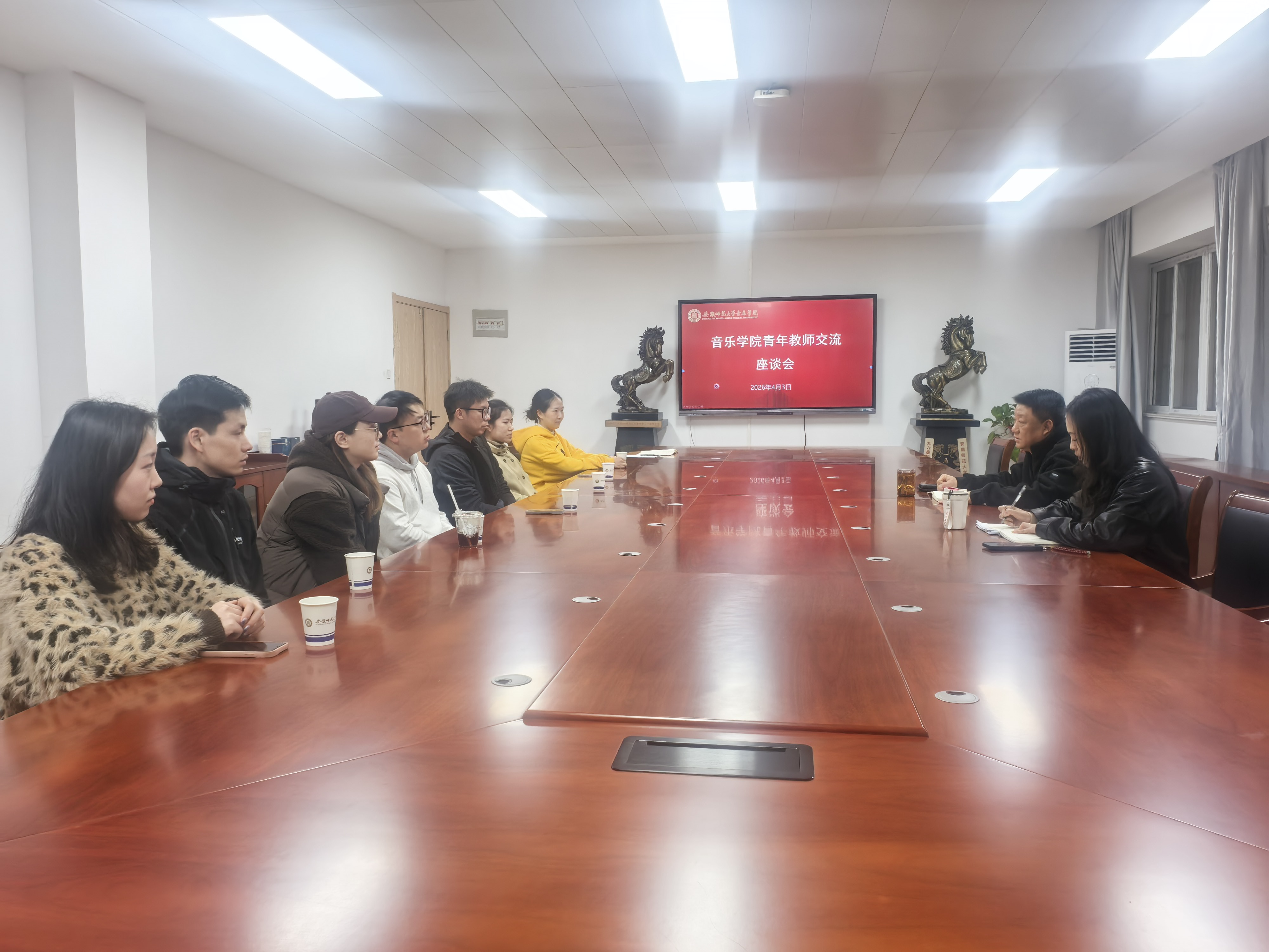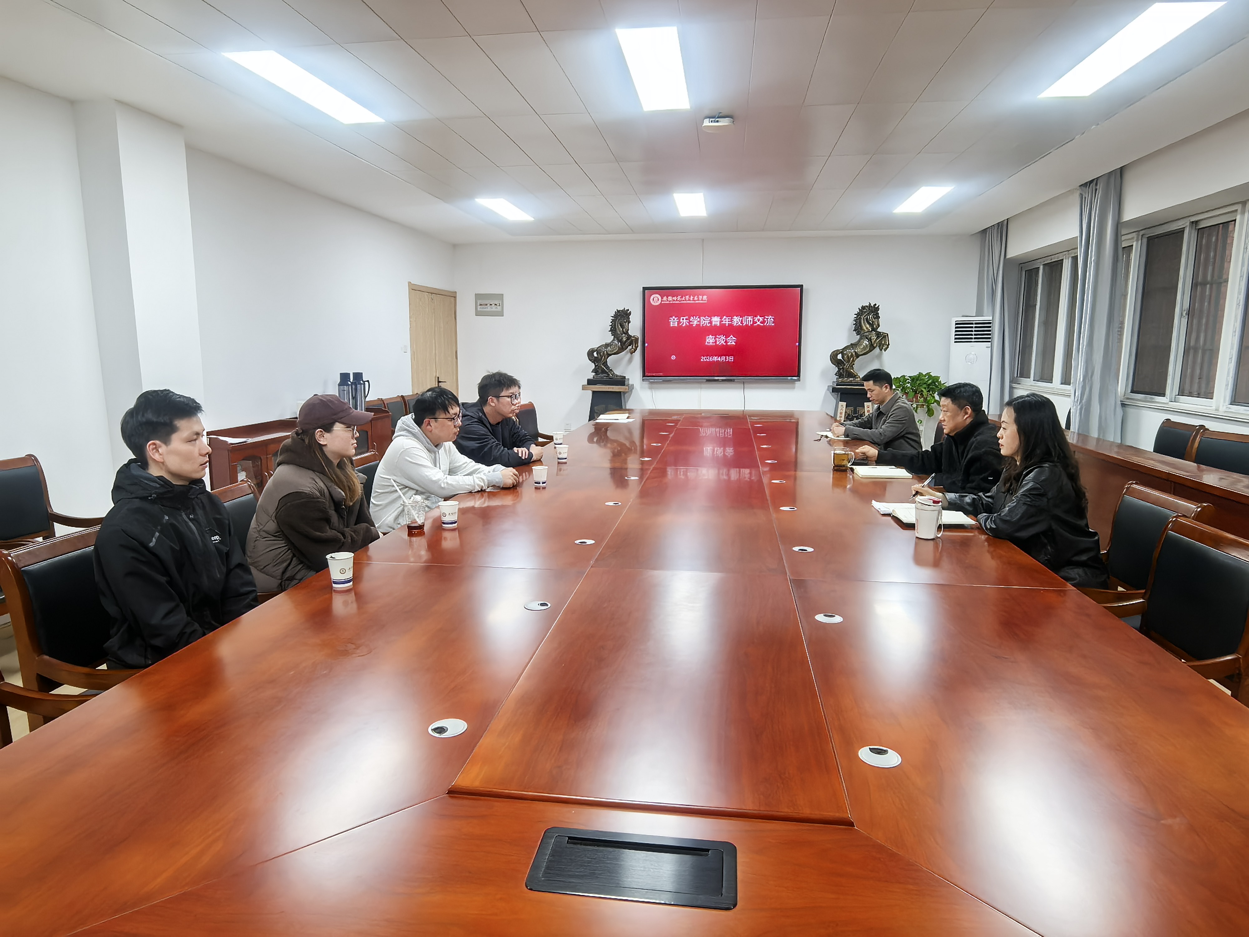 为深入了解青年教师成长诉求,强化青年教师队伍建设,凝聚学院高质量发展合力,4月3日下午,音乐学院召开青年教师座谈会,学院党委书记奚泰来、党委副书记、纪委书记王俊荣、院长助理朱厚鹏参加。学院部分青年教师代表齐聚一堂,围桌而坐、坦诚交流,共话成长、共谋发展,现场氛围热烈而融洽。