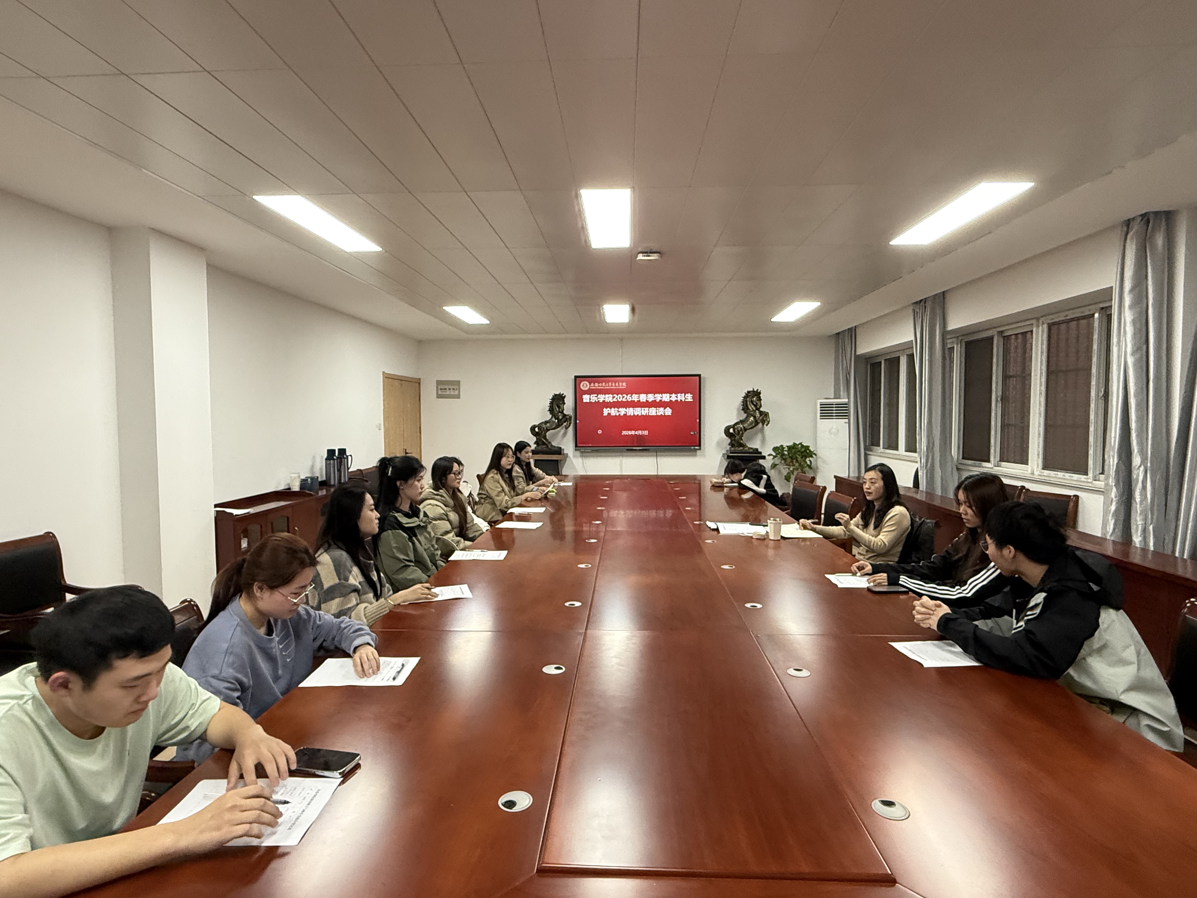 4月3日下午,音乐学院召开2026年春季学期本科生护航学情调研座谈会,学院党委副书记、纪委书记王俊荣和本科各年级、专业学生代表参加会议。