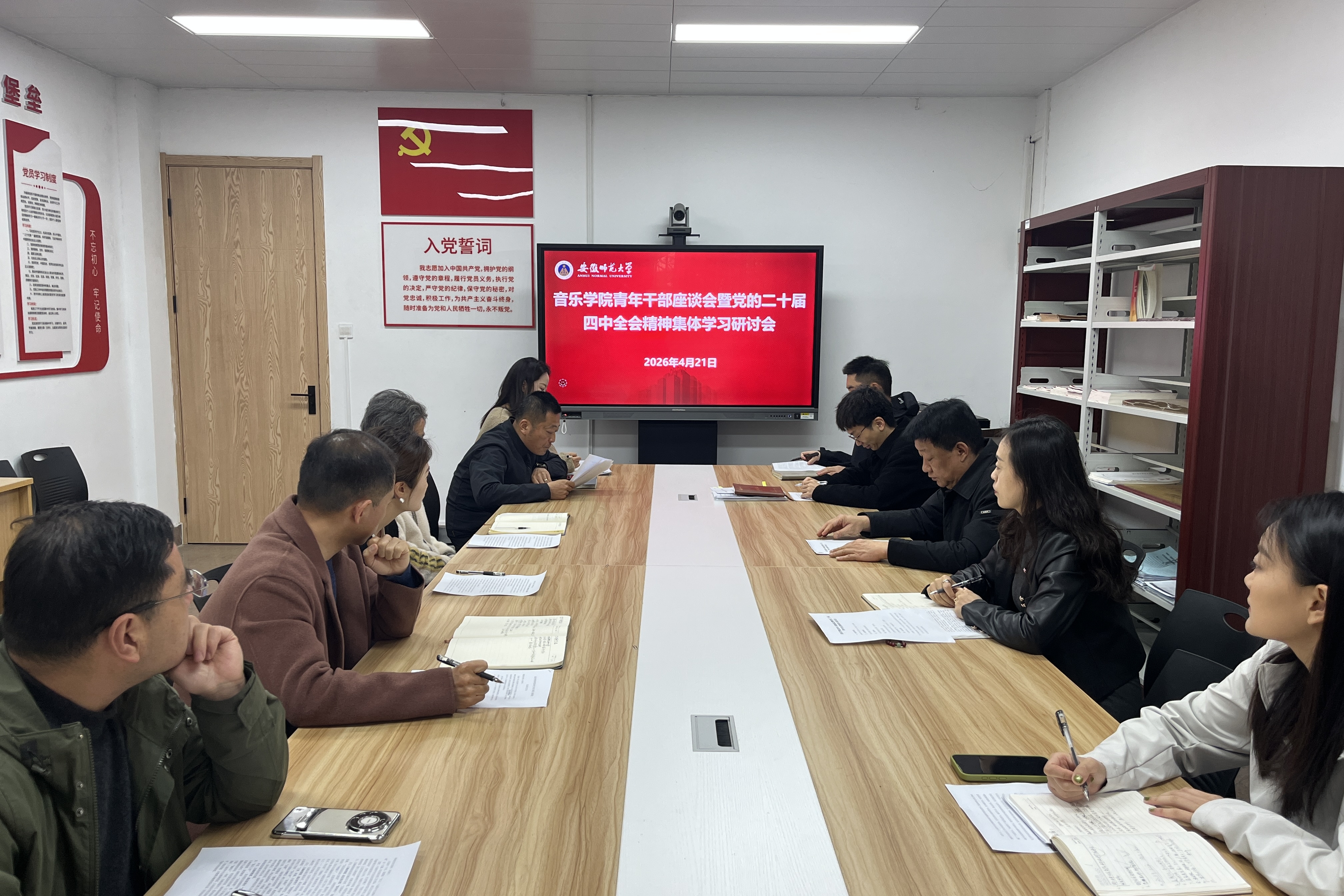 会上,大家集体观看了《“十五五”时期经济社会发展的重大战略任务》视频资料,张淼、张宇豪、陈虹三位同志作为代表,围绕学习贯彻党的二十届四中全会精神,牢固树立和践行正确政绩观”进行了主题发言,其他青年干部提交书面发言材料并进行深入的交流。座谈环节,与会青年干部围绕学院党的建设、研制“十五五”规划、干部队伍建设、艺术实践育人工程等方面积极建言献策。王俊荣在交流时勉励大家要讲政治、守初心,守纪律、强作风,敢担当、善作为。