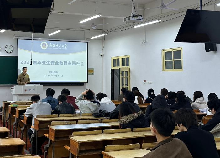 为进一步筑牢学生安全意识,构建和谐安全校园环境,音乐学院2022级本科生于4月22日在教学楼1403教室组织召开安全教育主题班会。辅导员段传钦作专题宣讲,全体返校同学参会学习。