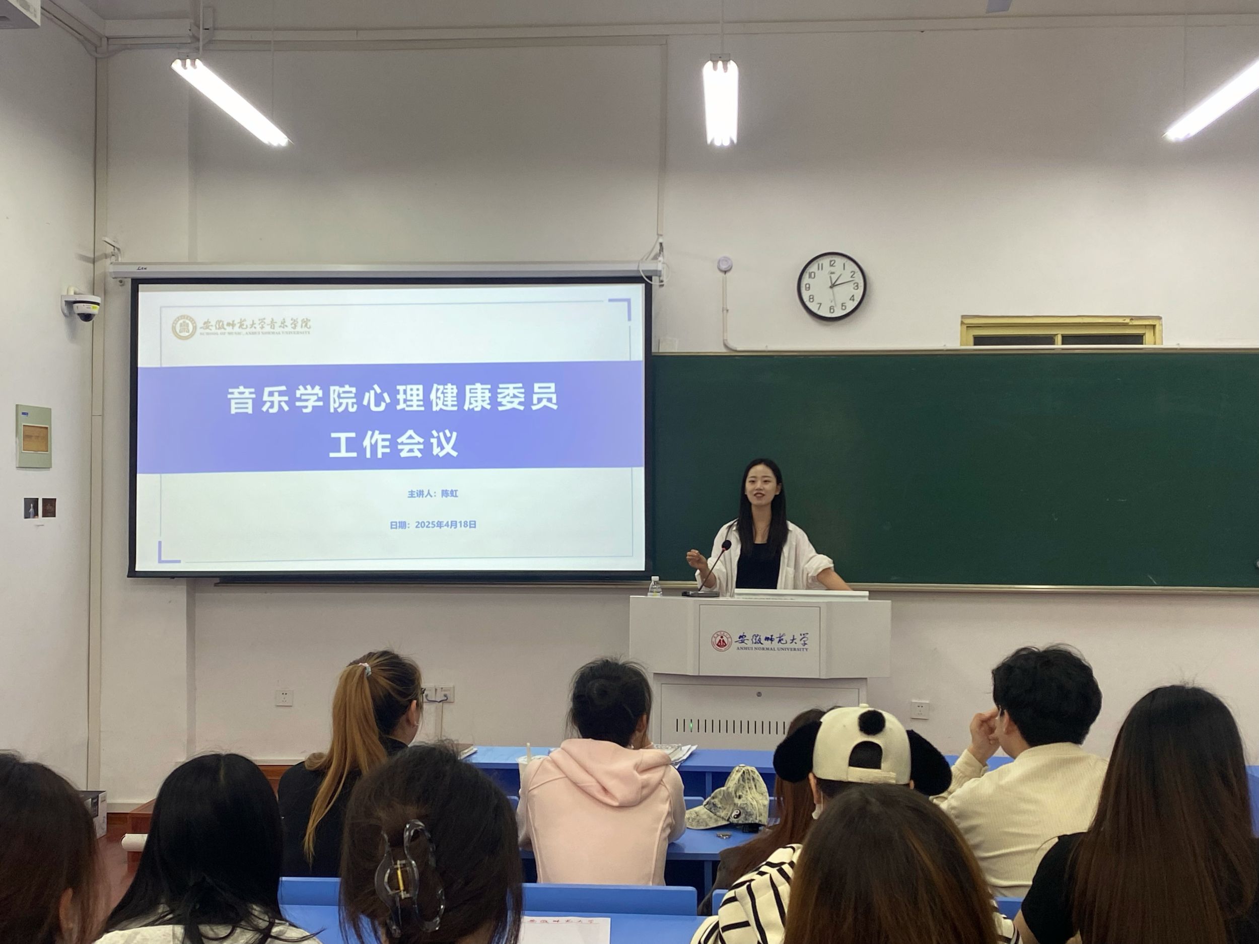 本网讯(21级音乐学 余欣)4月18日,音乐学院全体心理健康委员在教学楼1106教室召开音乐学院心理健康委员培训会,会议由音乐学院发展辅导站负责人陈虹主持。